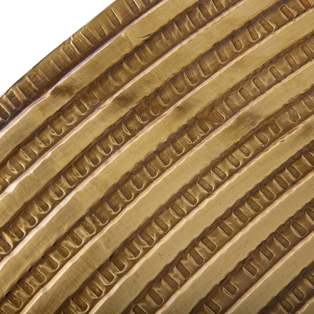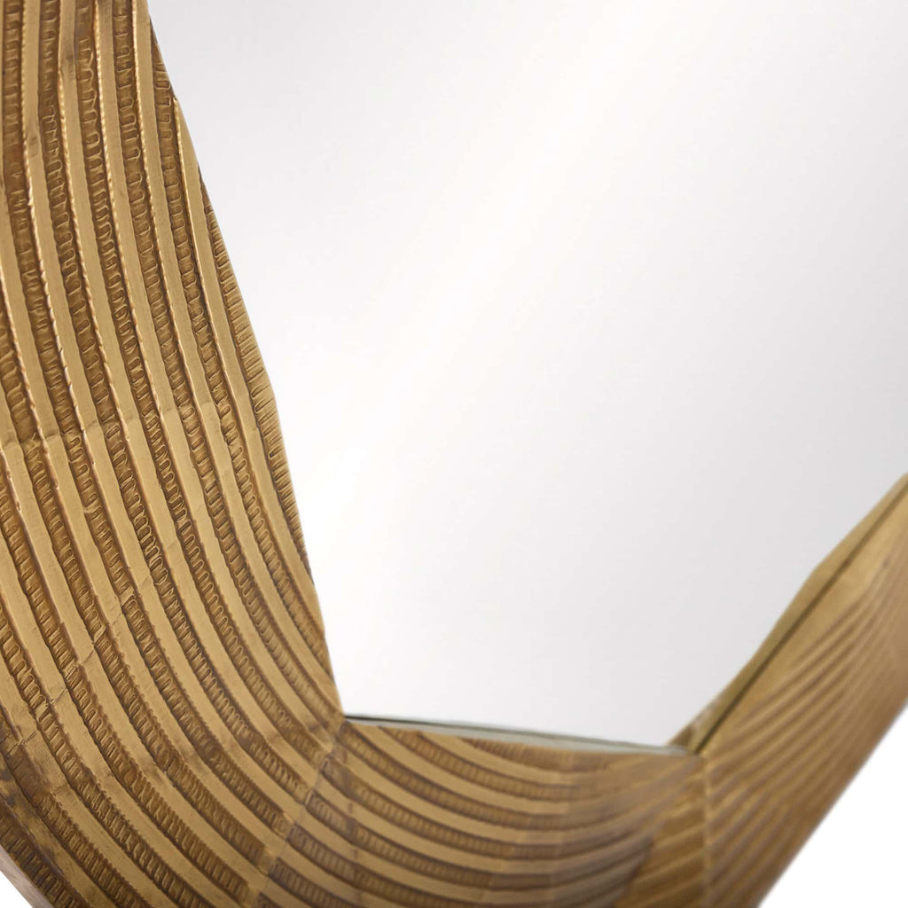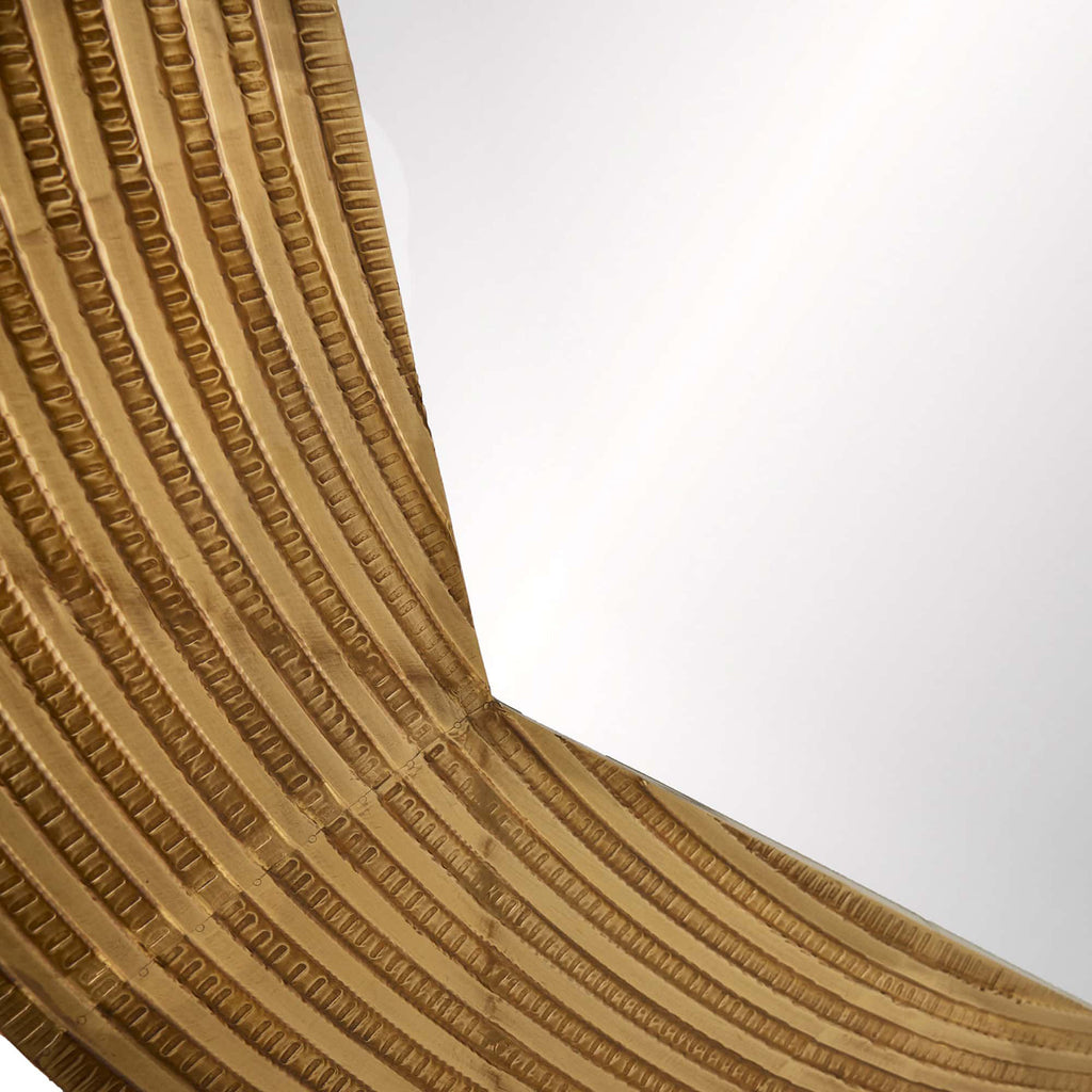 Arteriors Home lighting embodies the perfect balance of form and function, creating an ambiance that is both captivating and inviting. Whether you desire a statement piece for your entryway, an artfully distressed mirror for your living room, or a sleek and minimalist design for your bathroom, Arteriors Home has the perfect mirror to elevate your space to new heights. The generously scaled Arteriors Wilma mirror is a statement-maker in any space it resides. Designed with a mid-century sensibility, the round mirror is clad in lustrous antique brass with concentric lines and faceting detailing. The mirror is fitted with a cleat for hanging. Finish will vary.