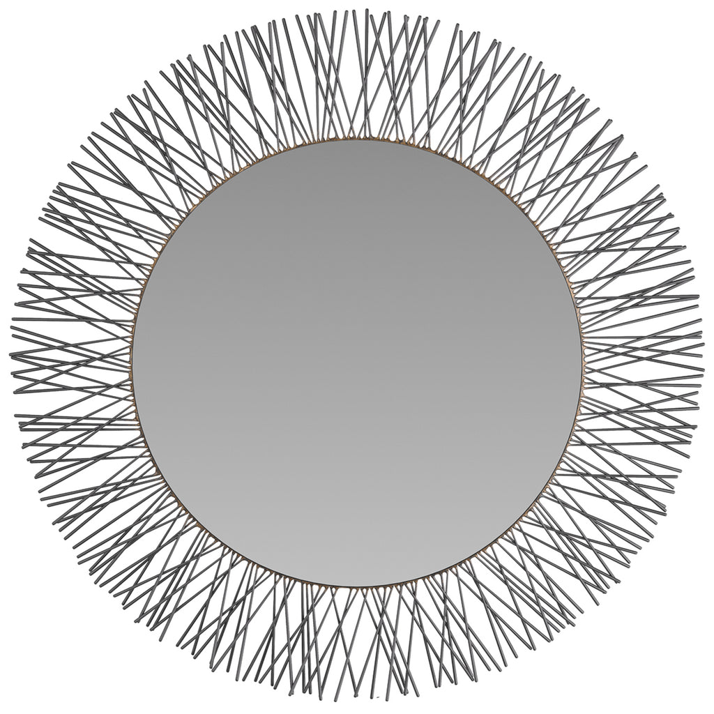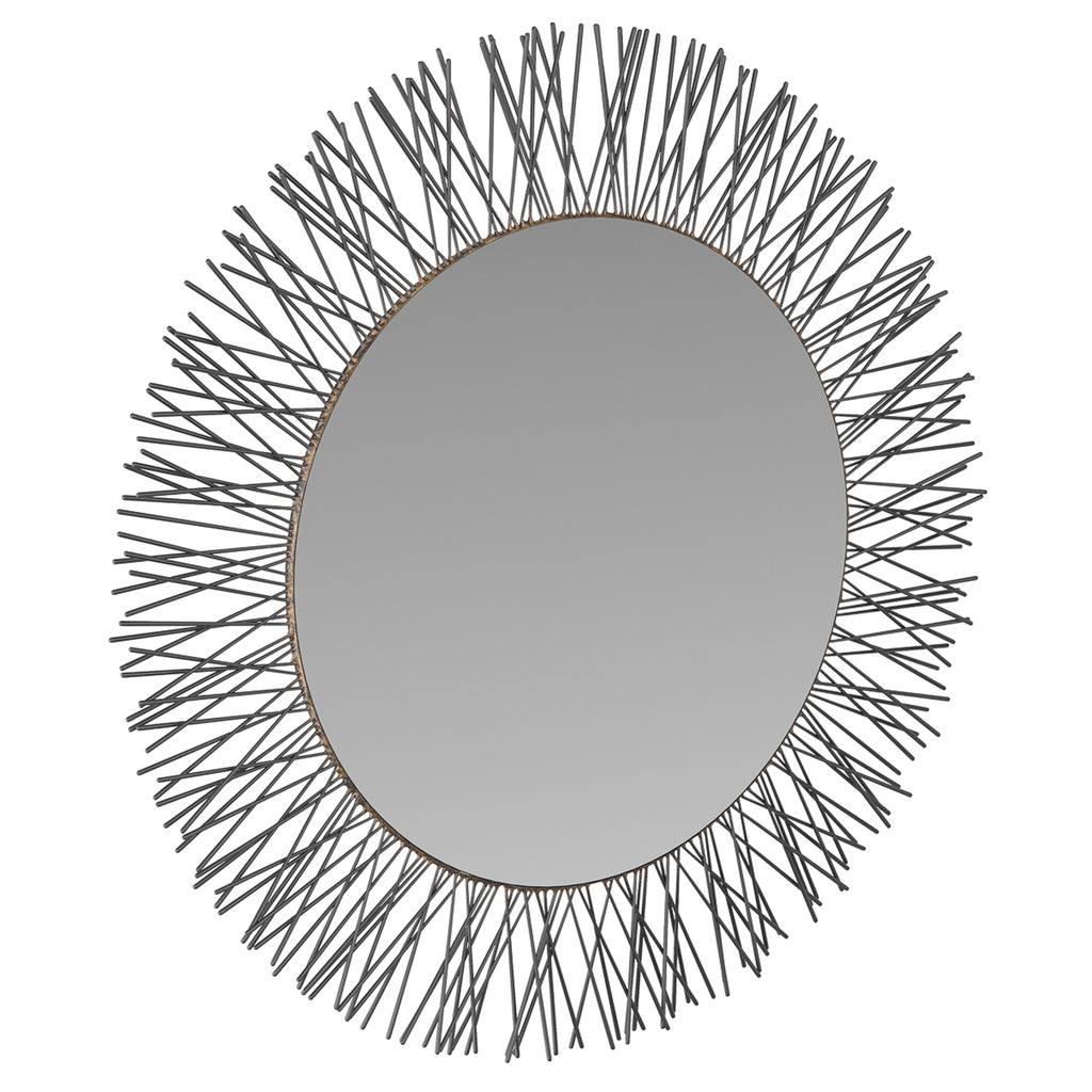 The spines of a sea urchin lend inspiration to a rounded mirror framed in burnished iron. Accented with contrast soldering about its perimeter, this organically pleasing style brings the best of the natural world into any space. Designed to be hung vertically, it is fitted with security cleat hardware. Finish will vary.