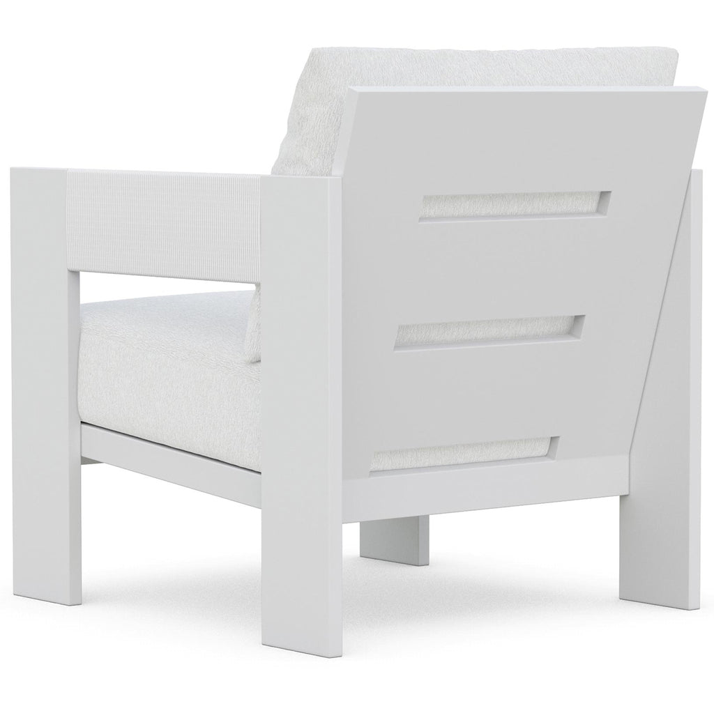 The Mykonos Club Chair from Azzurro Living embodies a simple, yet stunning profile with clean lines, bold forms, and subtle details. Weaves of all-weather textelene rope, engineered to defy harsh atmospheric conditions, entwine and smoothly blend with the frame. The weather-resistant, bright white powder-coated aluminum silhouette features spacious proportions, contoured for comfort. High-density cushions, wrapped in 100% solution-dyed acrylic Solvita Performance Fabrics, conform to your body, providing unparalleled comfort and endurance in high-traffic environments. Superbly constructed to weather the elements, the Mykonos Club Chair redefines outdoor leisure living