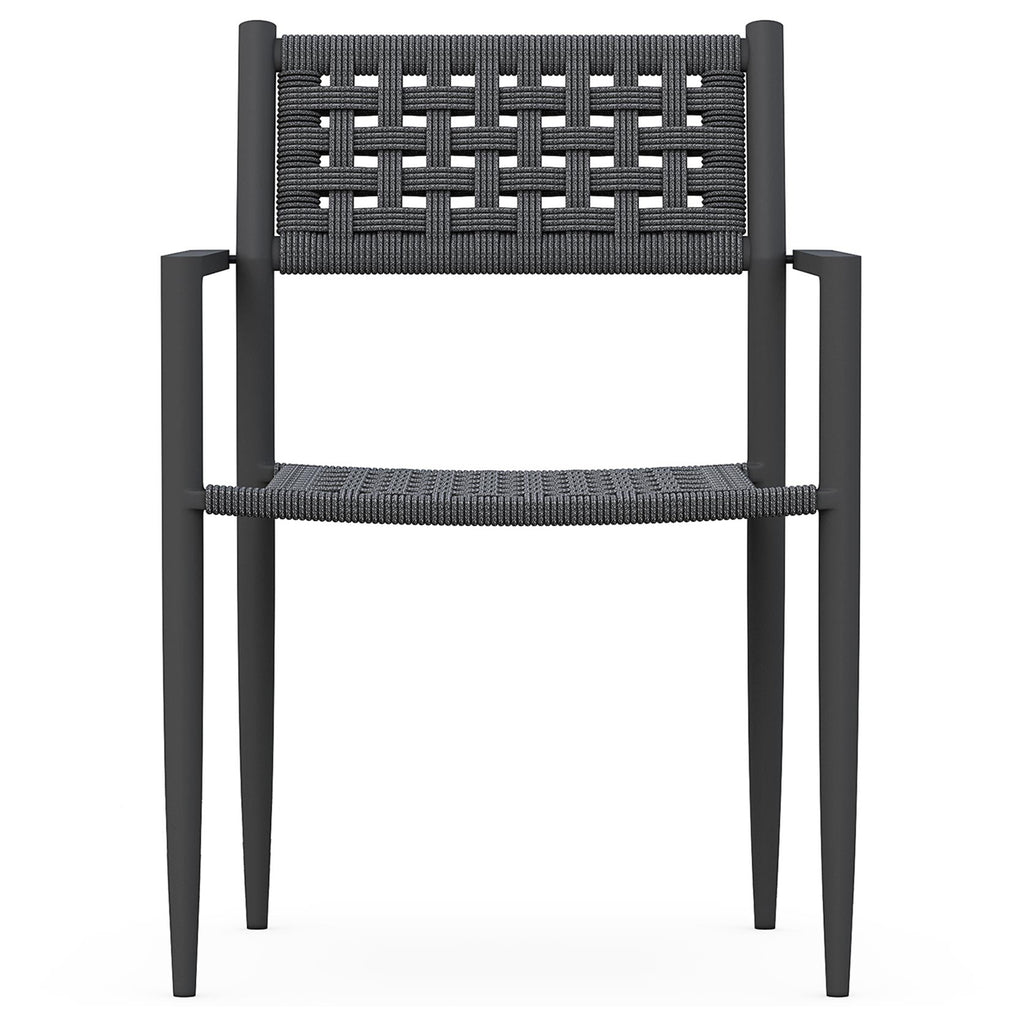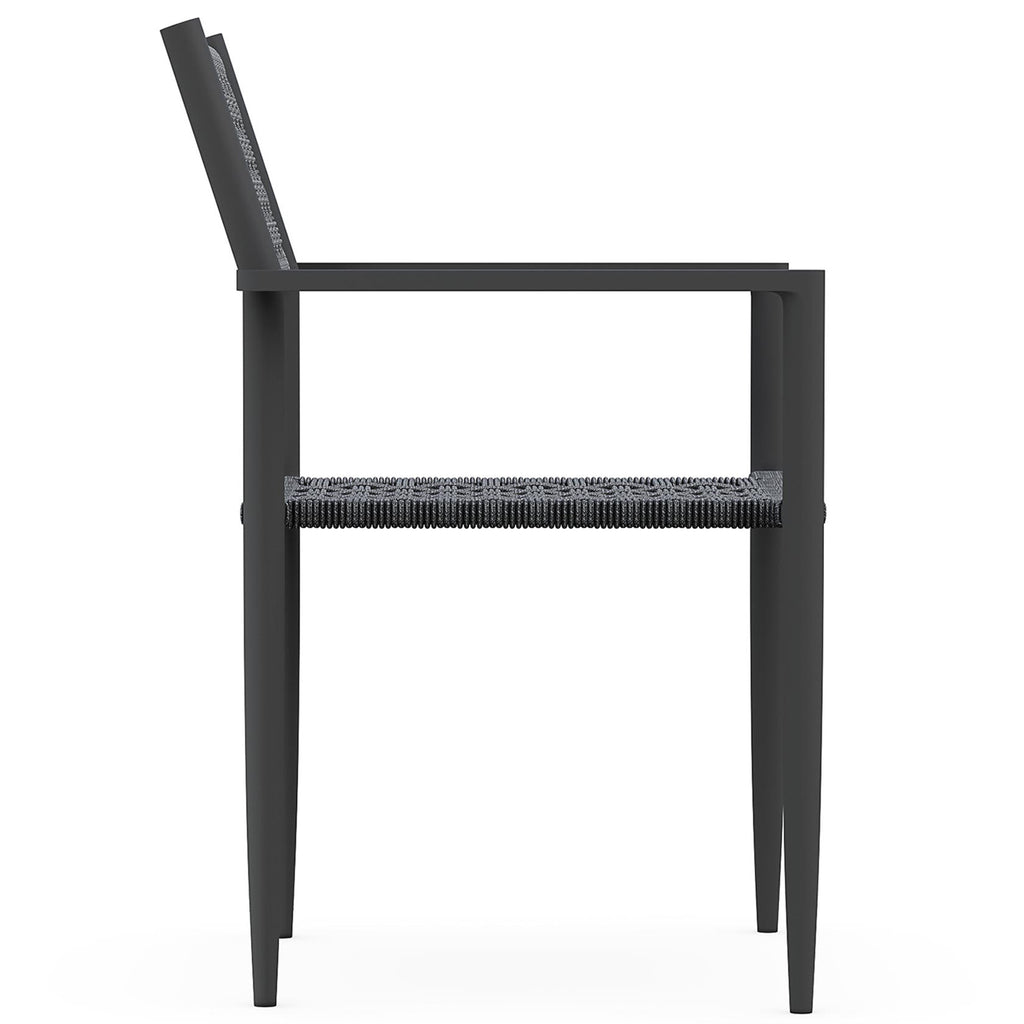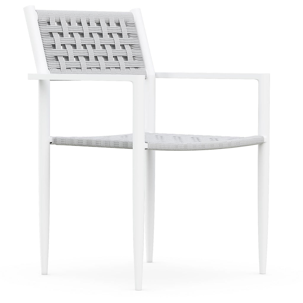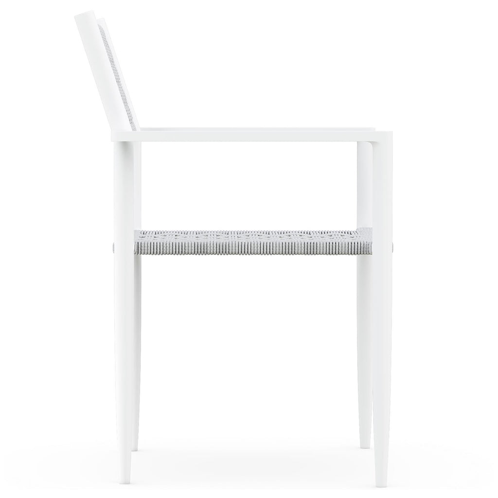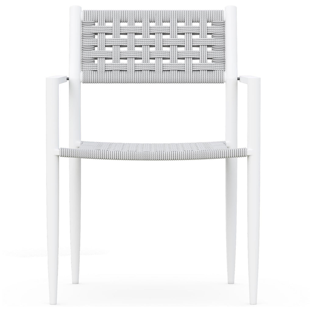 Designed to make a subtle statement, the Naples Dining Chair by Azzurro Living brings a sophisticated sense of function and leisure. The tapered powder-coated aluminum frame lends a modern aesthetic while maintaining the ability to be stackable. The all-weather rope is handwoven for durability in a versatile style that makes this dining chair easy to pair with an array of dining styles.