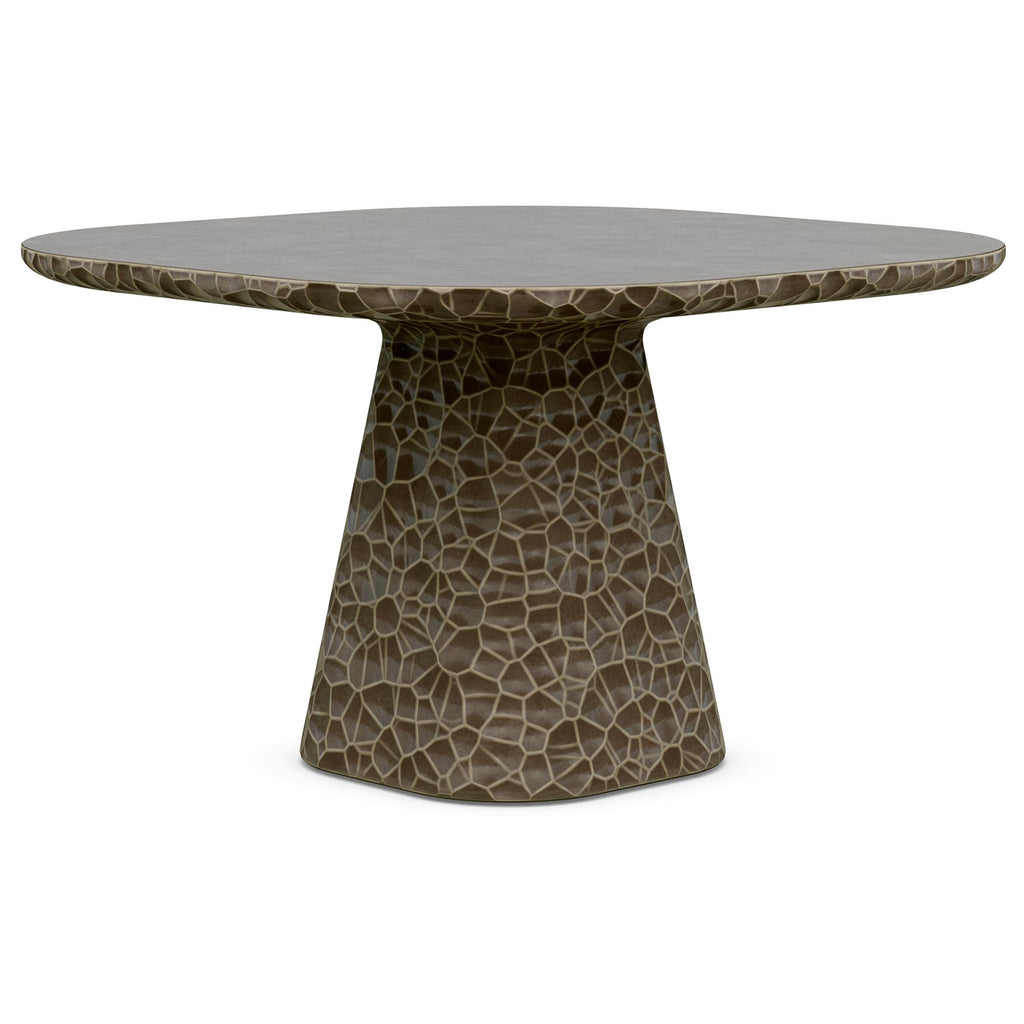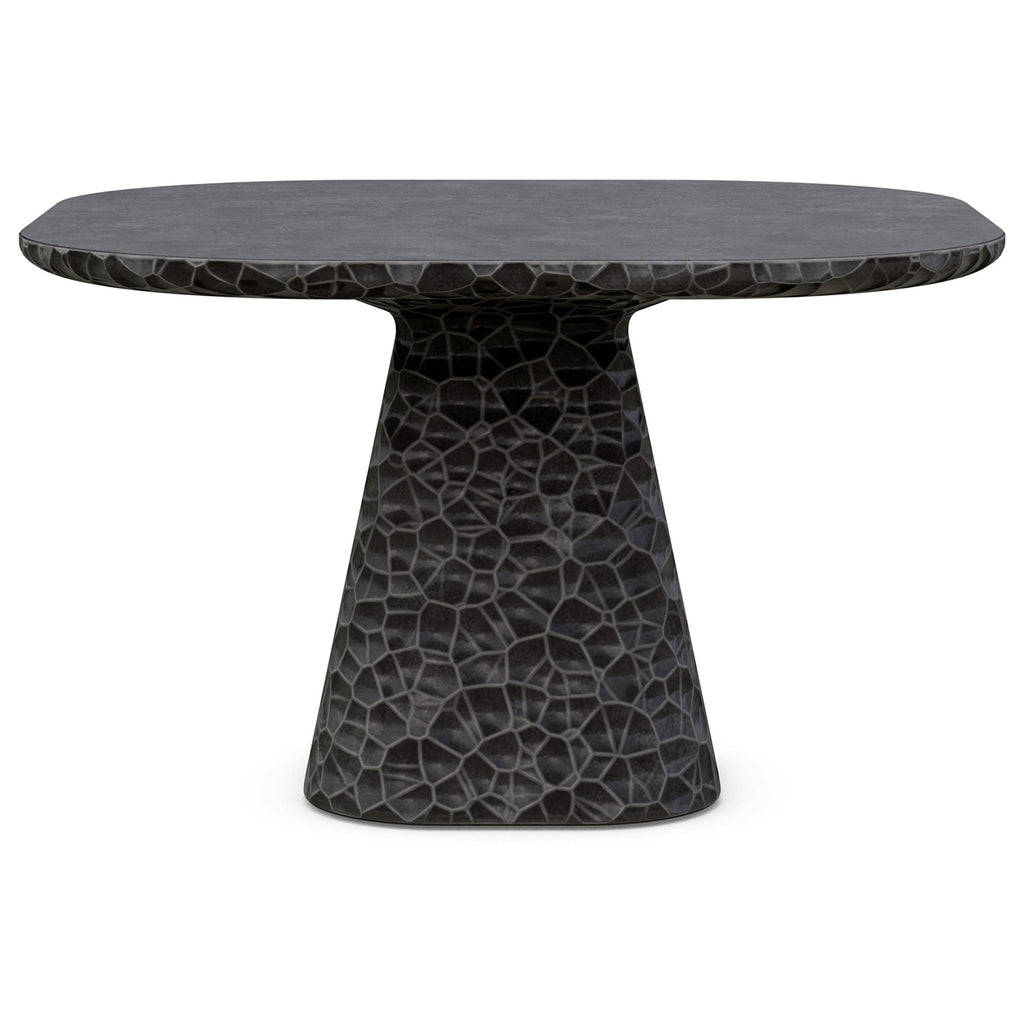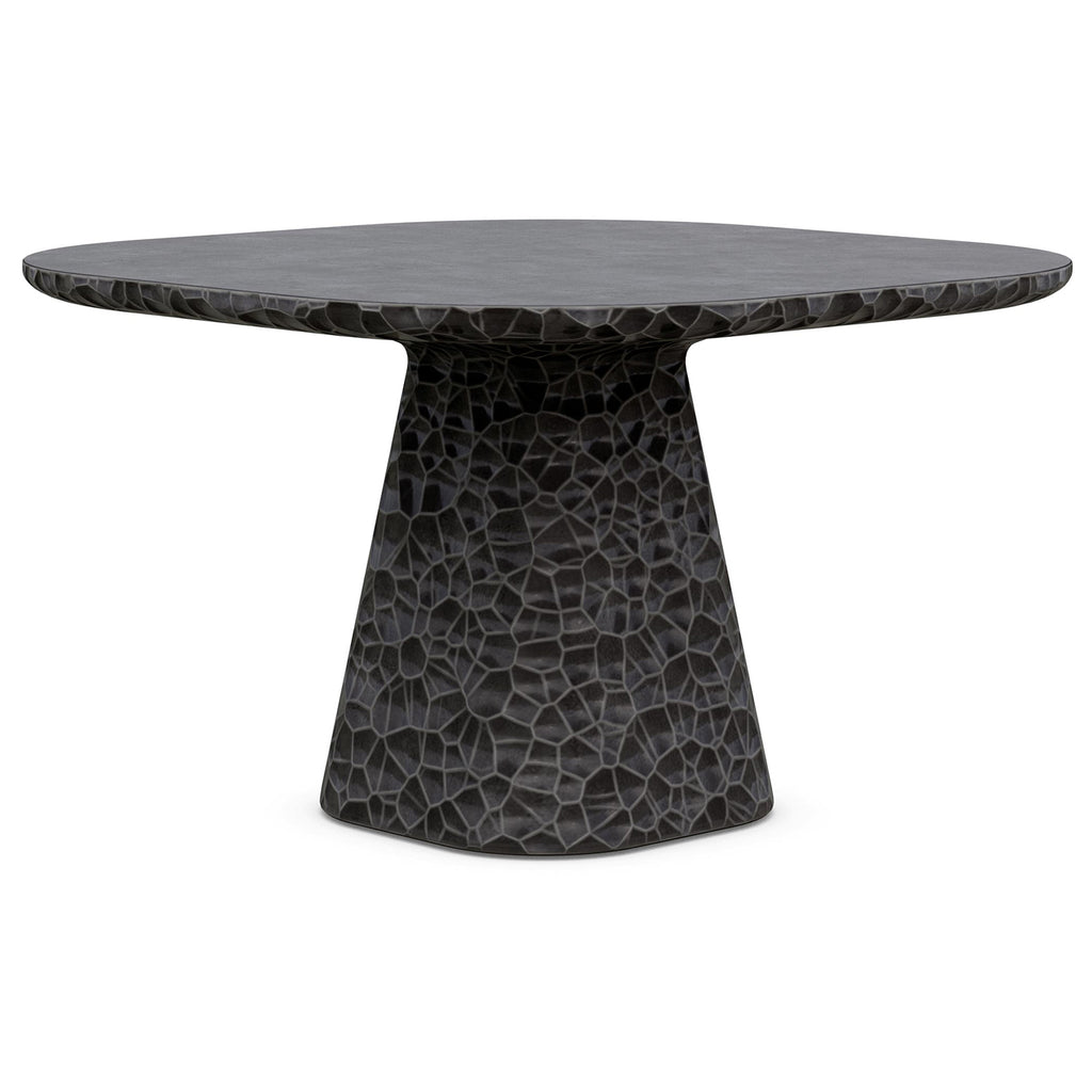 Elegantly crafted, the Panama Dining Table from Azzurro Living combines old-world charm with modern sophistication. Hand-carved circular details and a sleek polished table top create a captivating look. Its abstract honeycomb texture, resembling hammered metal, is reimagined in glass fiber reinforced concrete, providing durability and resistance to the elements. Choose the Panama Dining Table for enduring elegance.