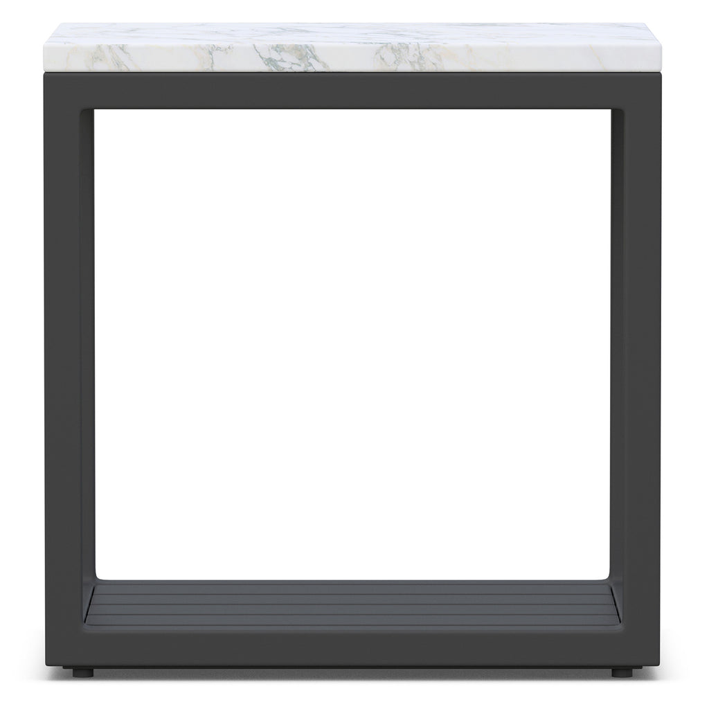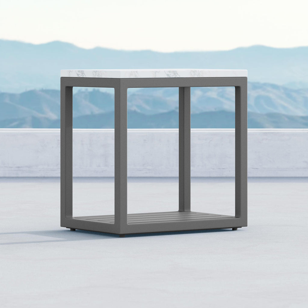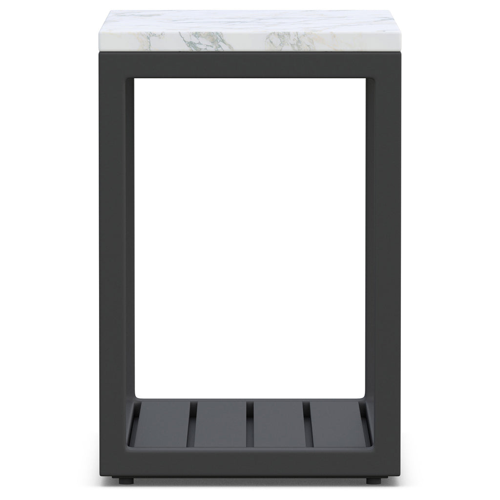Elevate your outdoor space with the Seaview Side Table by Azzurro Living. This sophisticated side table features a honed carrara marble top and is made from durable powdercoated aluminum. Its sleek metal and natural marble create a modern and refined look that is perfect for any outdoor decor.