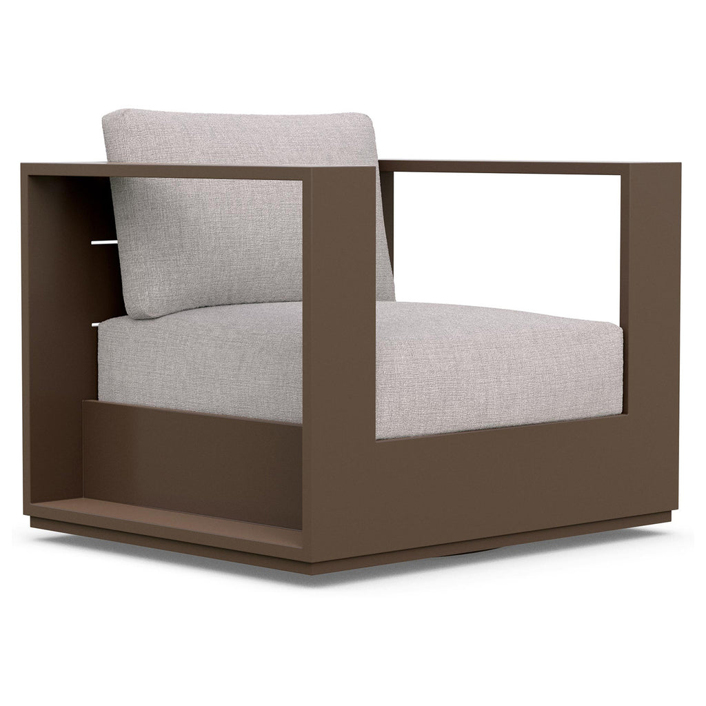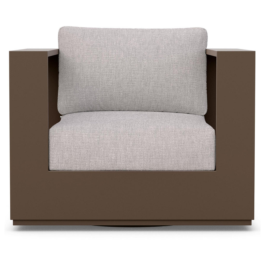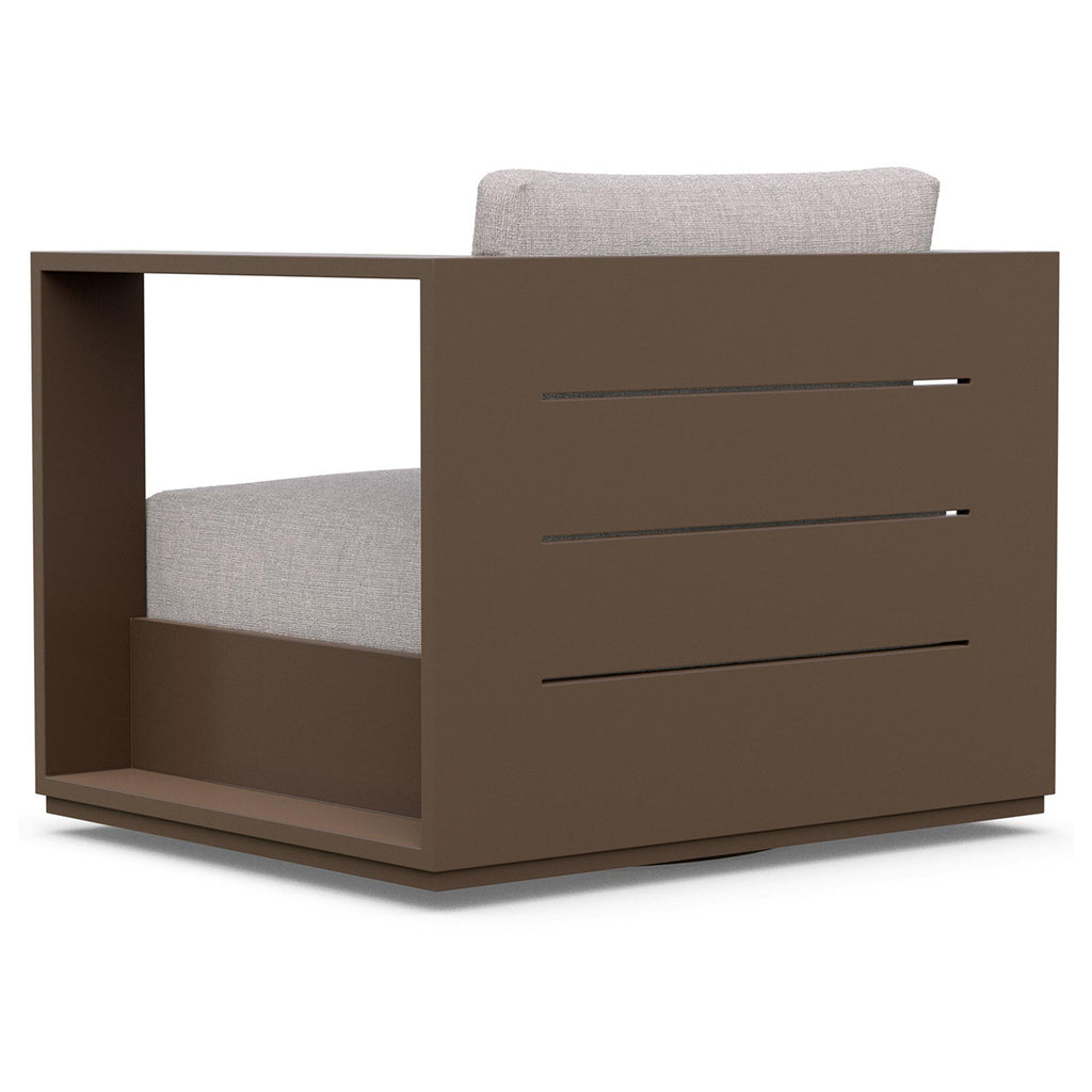 The Sydney Swivel Club Chair from Azzurro Living draws attention with its bold, perfectly proportioned frame that remains both beautiful and sturdy in tough residential or commercial settings. High-density cushions offer deep comfort, while 100% solution-dyed acrylic Solvita Performance Fabric ensures lasting relaxation with resistance to stains and mildew. Indulge in the comfort of materials and witness the beauty of form with the Sydney Swivel Club Chair.