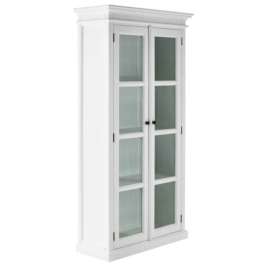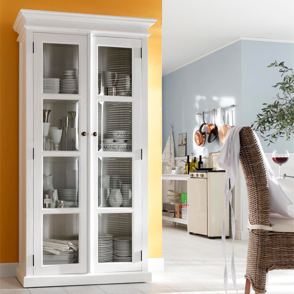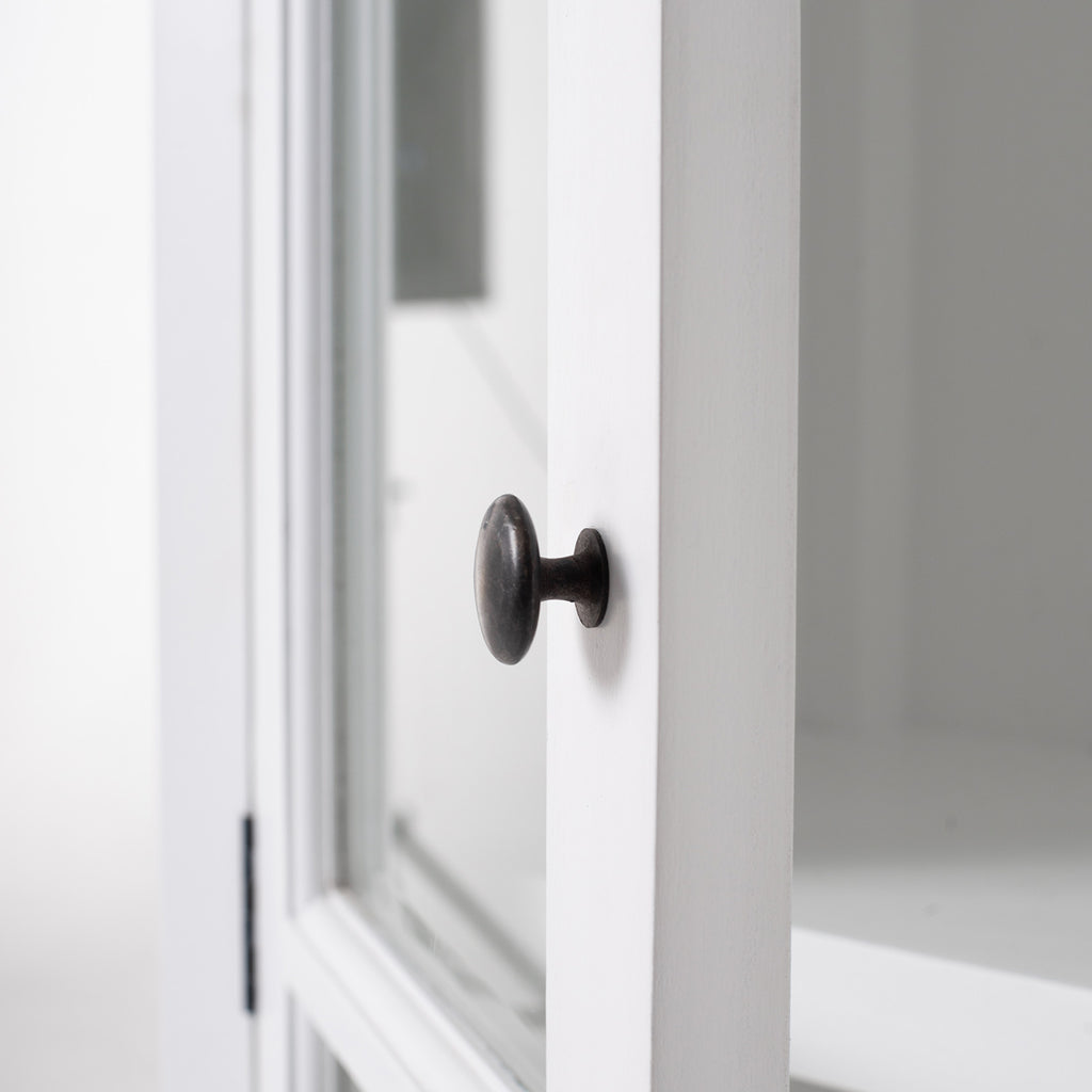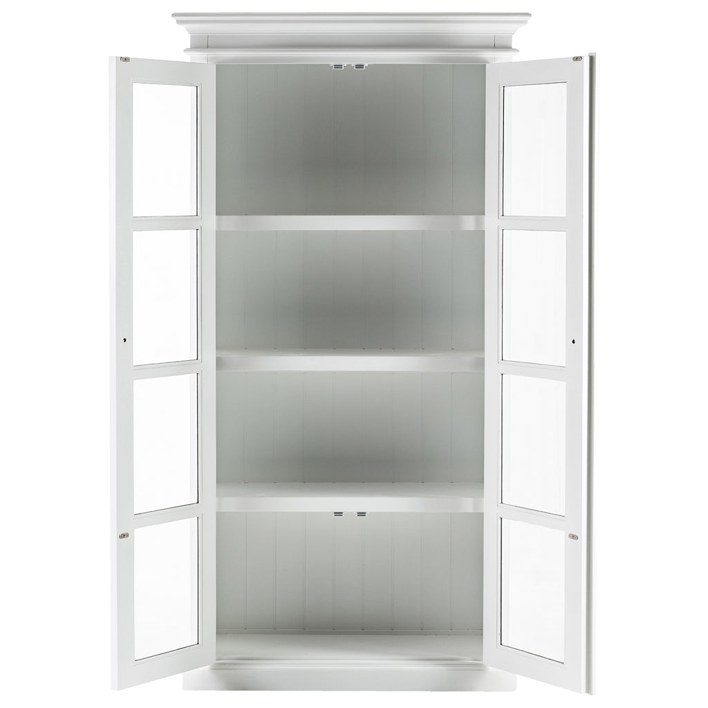 Beckton combines the quaint charm of the French Countryside with the coastal flair of the Eastern Seaboard to form a comprehensive range befitting the dining area, living space or bedroom. Detailed profiling on each piece, together with the warm finishing and antique brass hardware, provides a classic collection for the contemporary home. Keep your collectibles or china on display behind two glass paneled doors. Attractive beadboard wainscotting provides a subtly detailed backdrop for your finer housewares. The crown moulding adds a quiet elegance.
