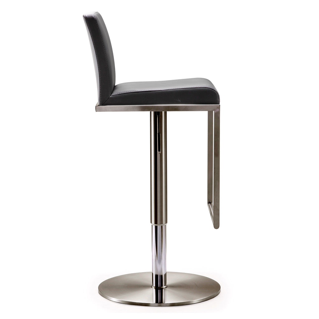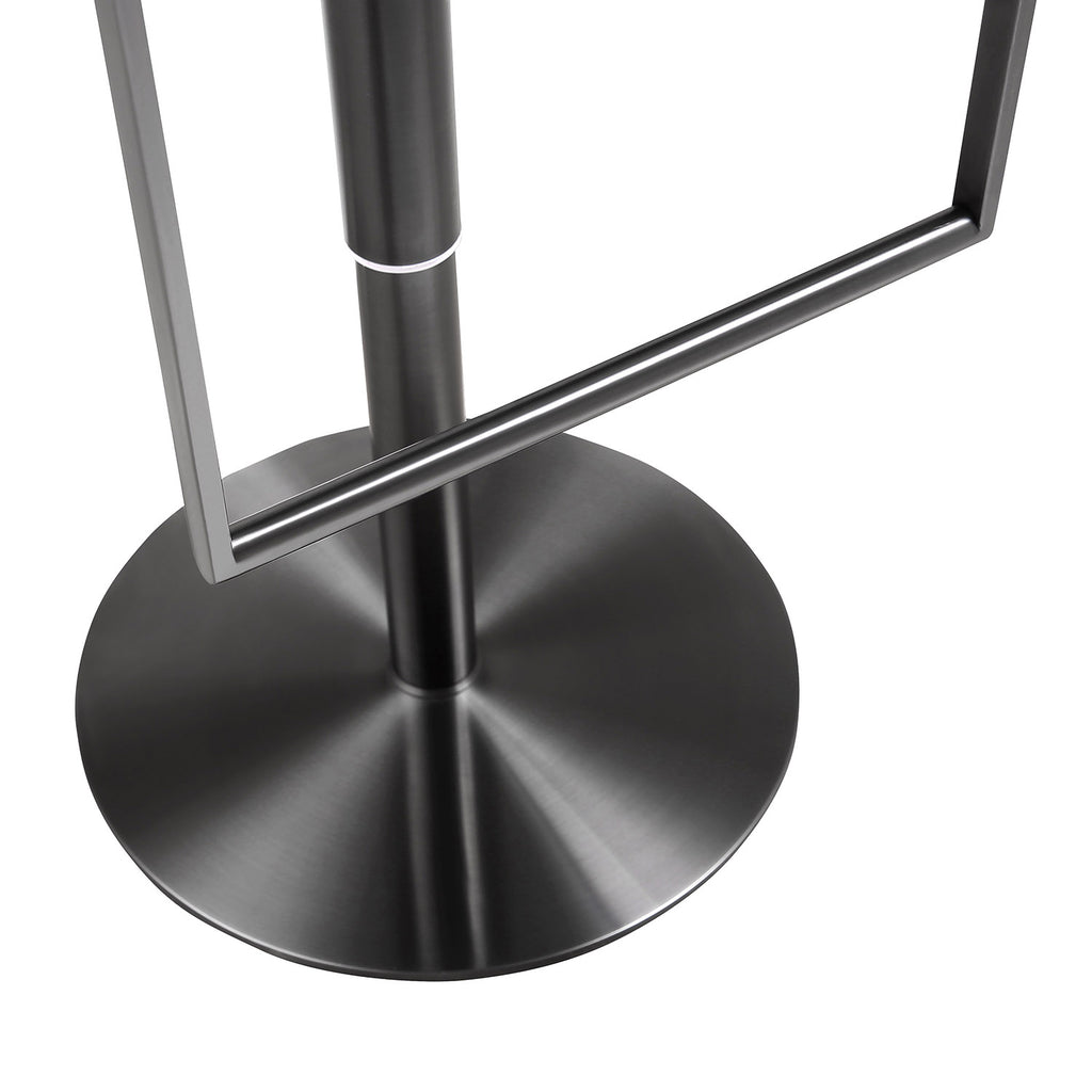 • Frame and footrest feature Dark Gray stainless steel finish, Vegan Leather Upholstered Seat, Round Base