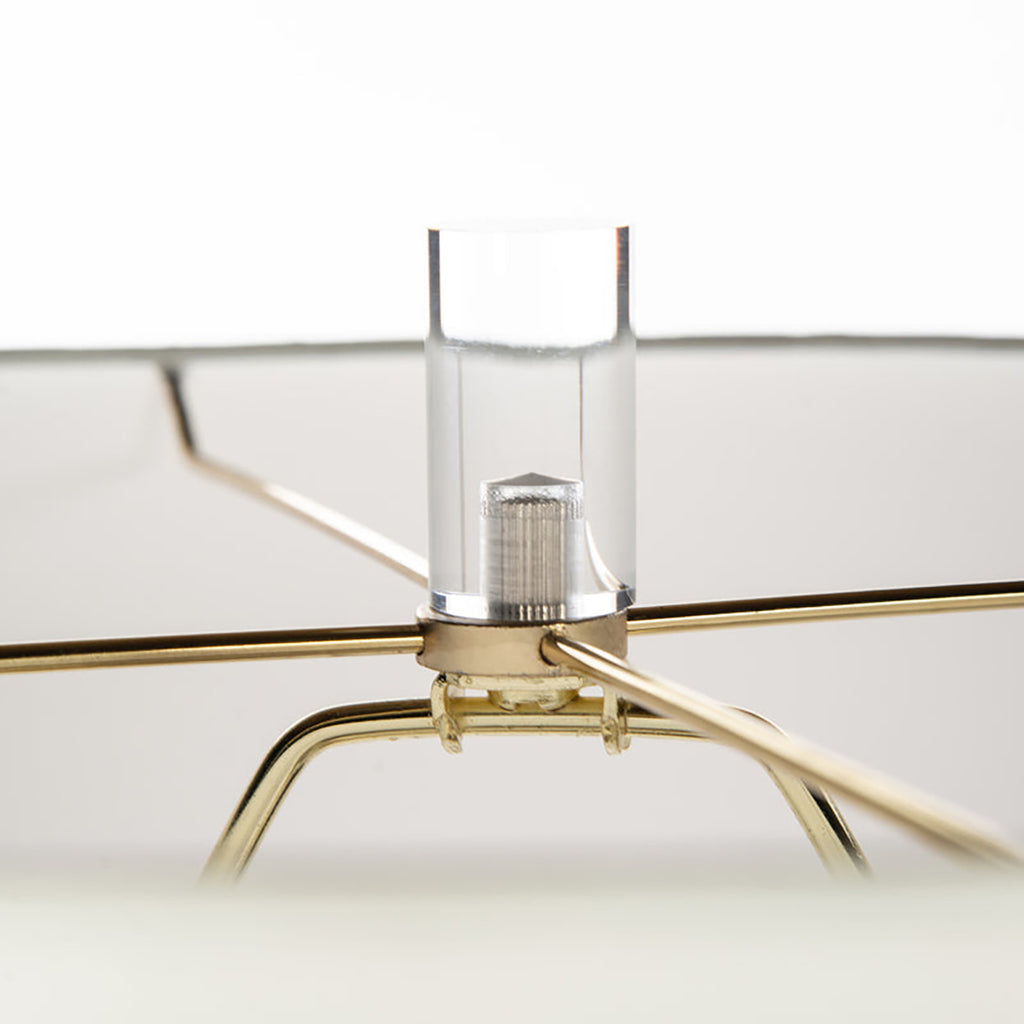 Pairing a classic stove pipe profile with a soft and enticing blue finish, this ceramic table lamp is a wonderful way to bring color to your great room. Its traditional stance is complemented with an intricately carved base in rich gold leaf finish and topped with a cream drum shade for excellent illumination.