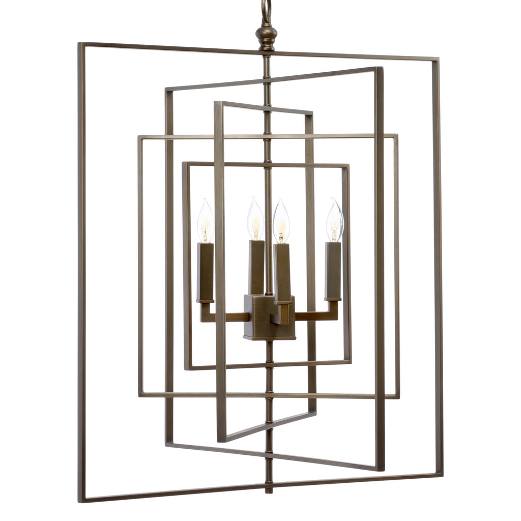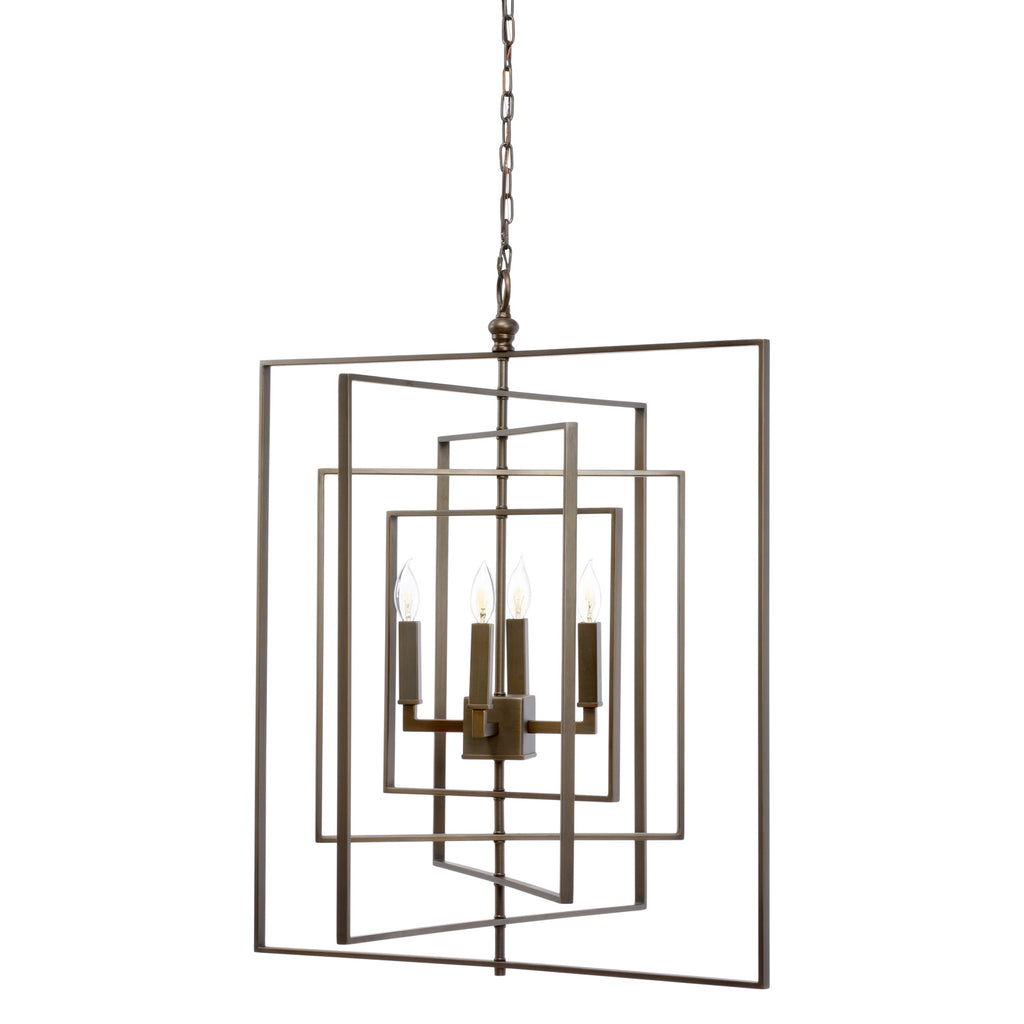 Bring a modern glow to your home with this Chelsea House chandelier. Bold and elegant, this contemporary light fixture makes a modern statement. Antique brass or bronze finish, 4 lights. Lisa Kahn design.