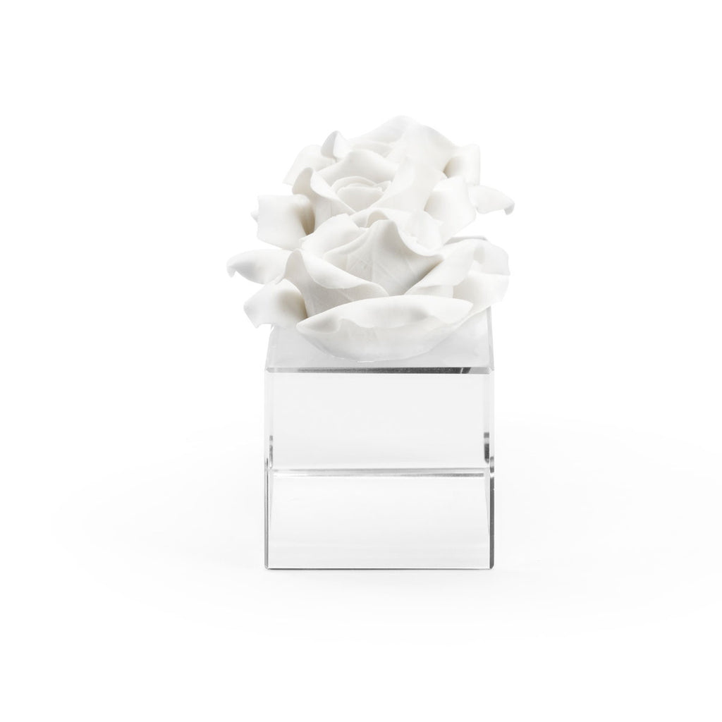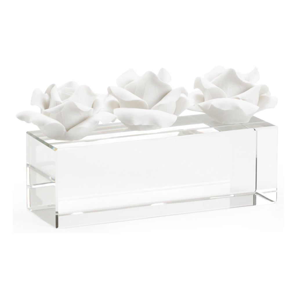 Chelsea House decorates the home with this gorgeous object. A sophisticated conversational piece, place this accent atop a coffee table or mantle to catch the eye. Beautiful and delicate, the Chelsea House Rose Pave with hand applied petals on a solid crystal base. Designed by Claire Bell.