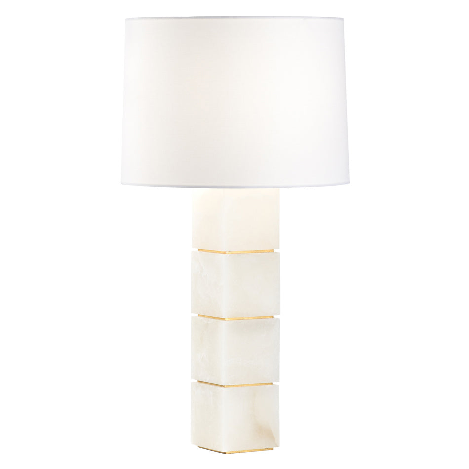 Sophisticated and stunning lamp made of natural alabaster with gold leaf bands. Subtle shading in the stone add to its depth and beauty. Designed by Elizabeth Wicker