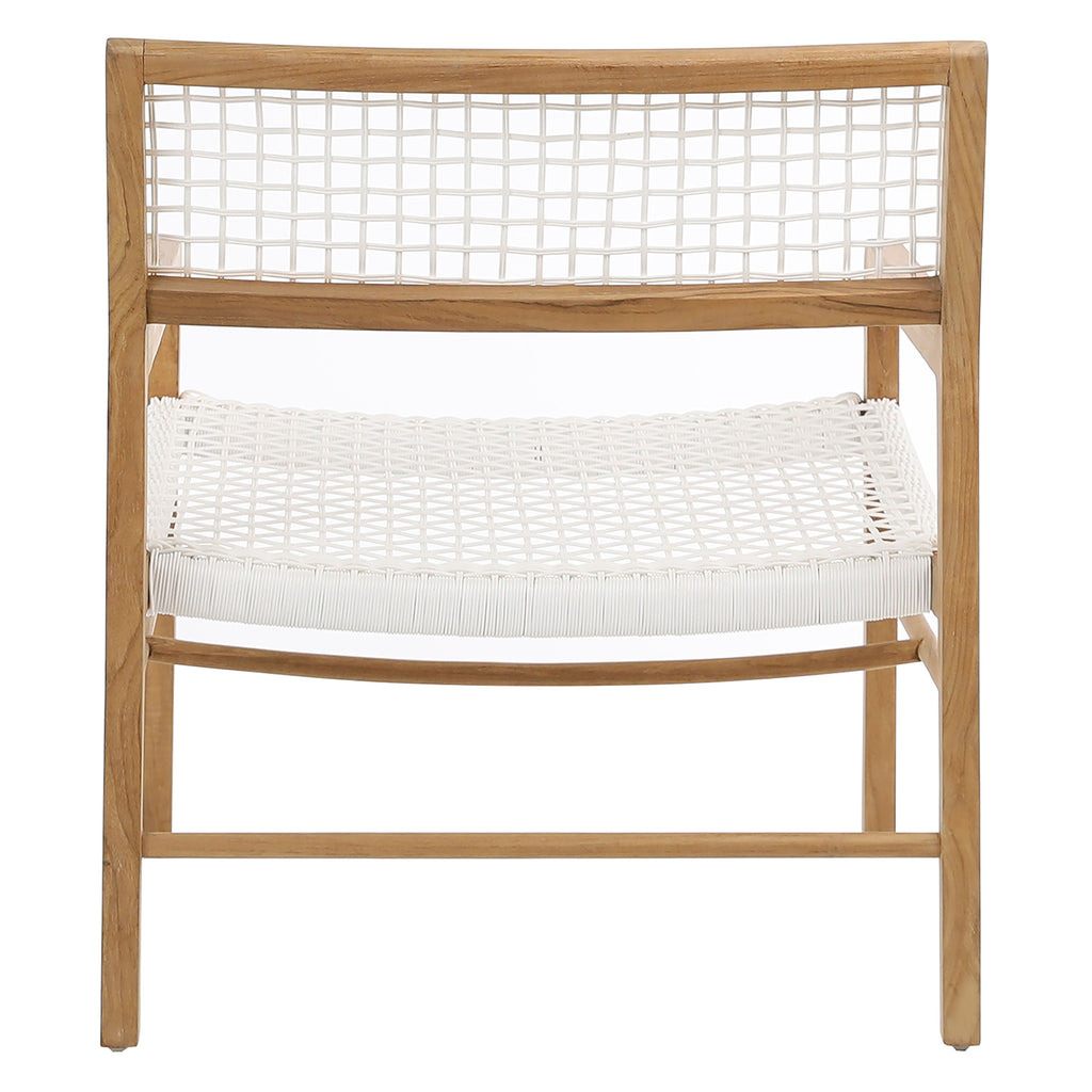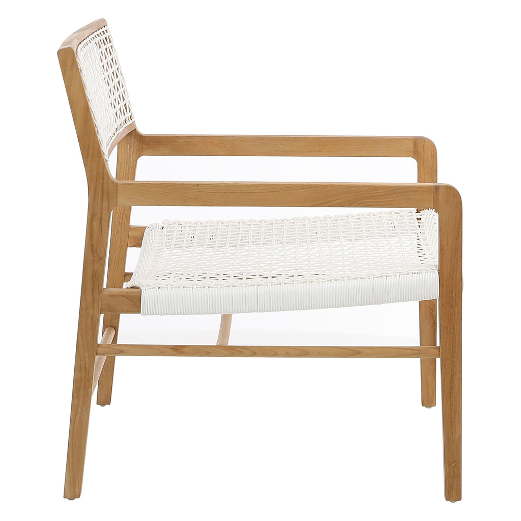 Clean lines and solid teak wood construction finished with a meticulously crafted handwoven synthetic rattan seat and back. This occasional chair will bring some serious style to your space. Works beautifully as a living room lounge chair, sculptural statement chair, or as a fun dining chair. Style it as a standalone piece or in a pair.