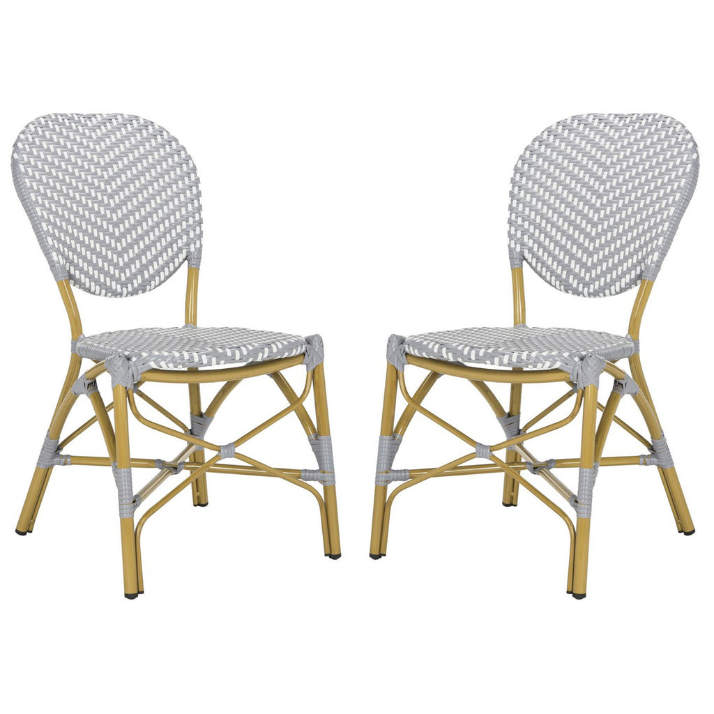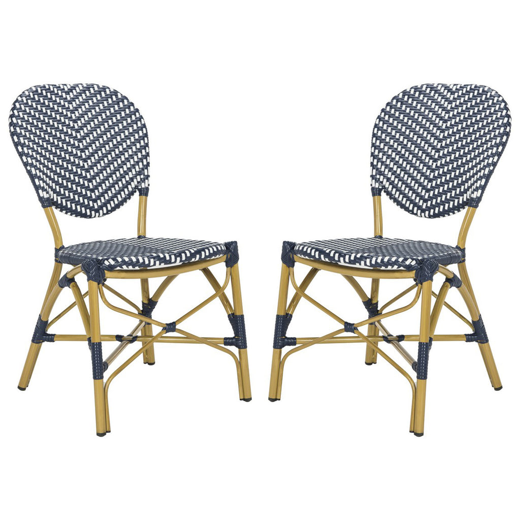 Escape to your favorite Parisian café with this French bistro stacking side chair. Its Navy & White or Grey & White pattern is ideal for the kitchen, porch or dining room. Designers love its authentic wicker style that adds just the right touch of je ne sais quoi.