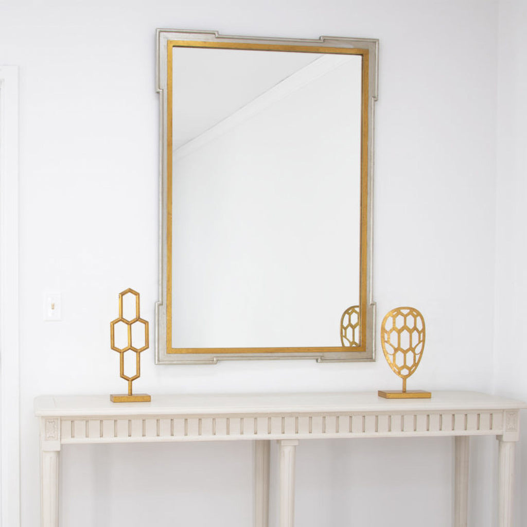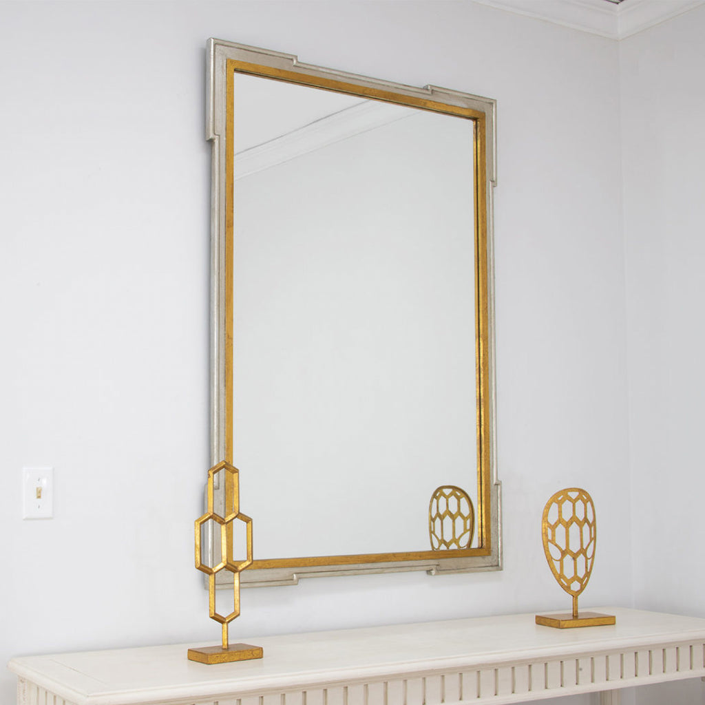 • Finish: Antiqued Silver Leaf with Antiqued Gold Leaf or Antique Gold
