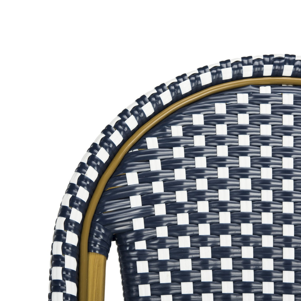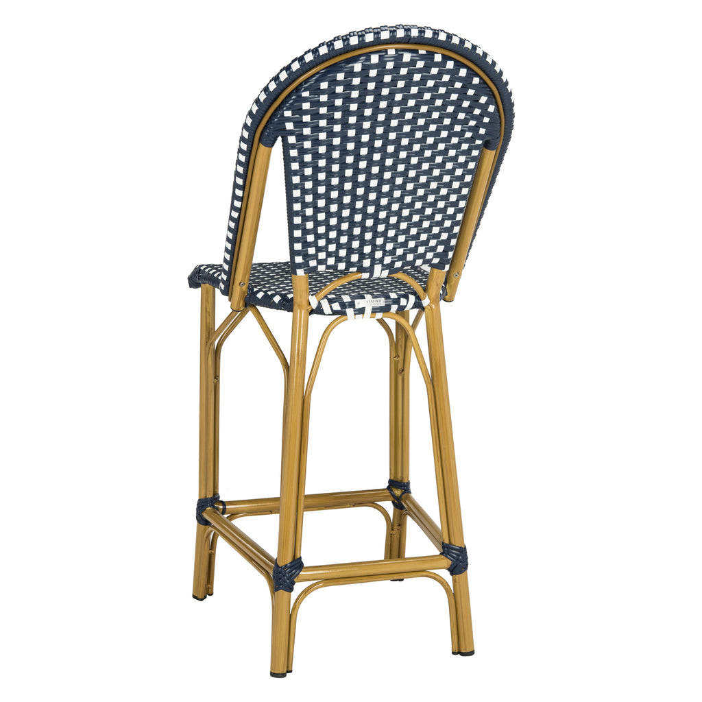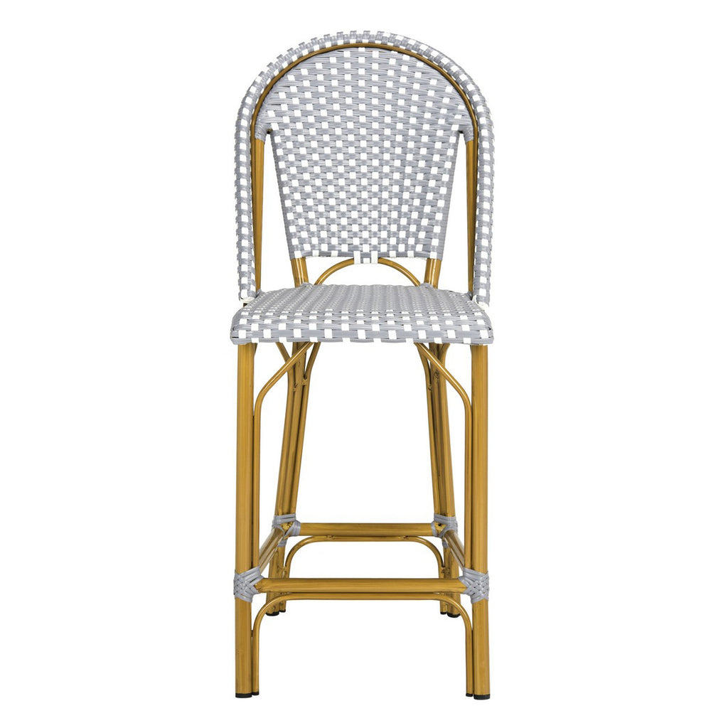 Raise your aperitif and toast to Parisian style with this indoor-outdoor stacking French bistro counter stool. Created for those seeking Gallic flair in any dining area, the White, Navy/White or Gray/White is paired with light brown wicker for an authentic look.