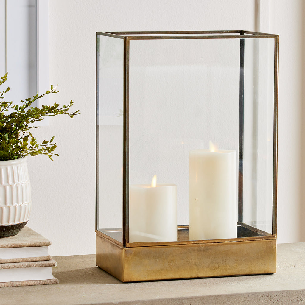 In a classic wide open design features your favorite candle display in a simple and clean way. Great along a hearth, or on a covered front porch for extra charm.