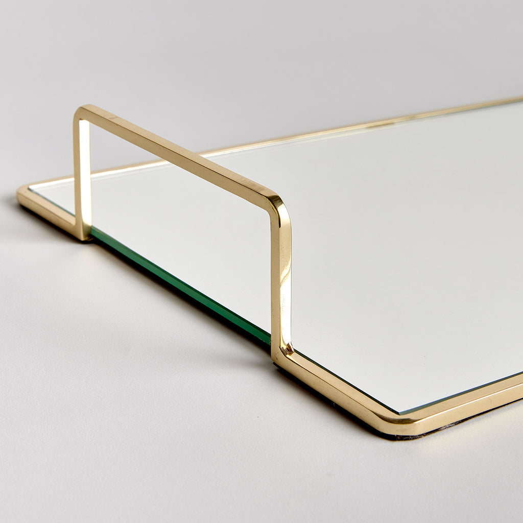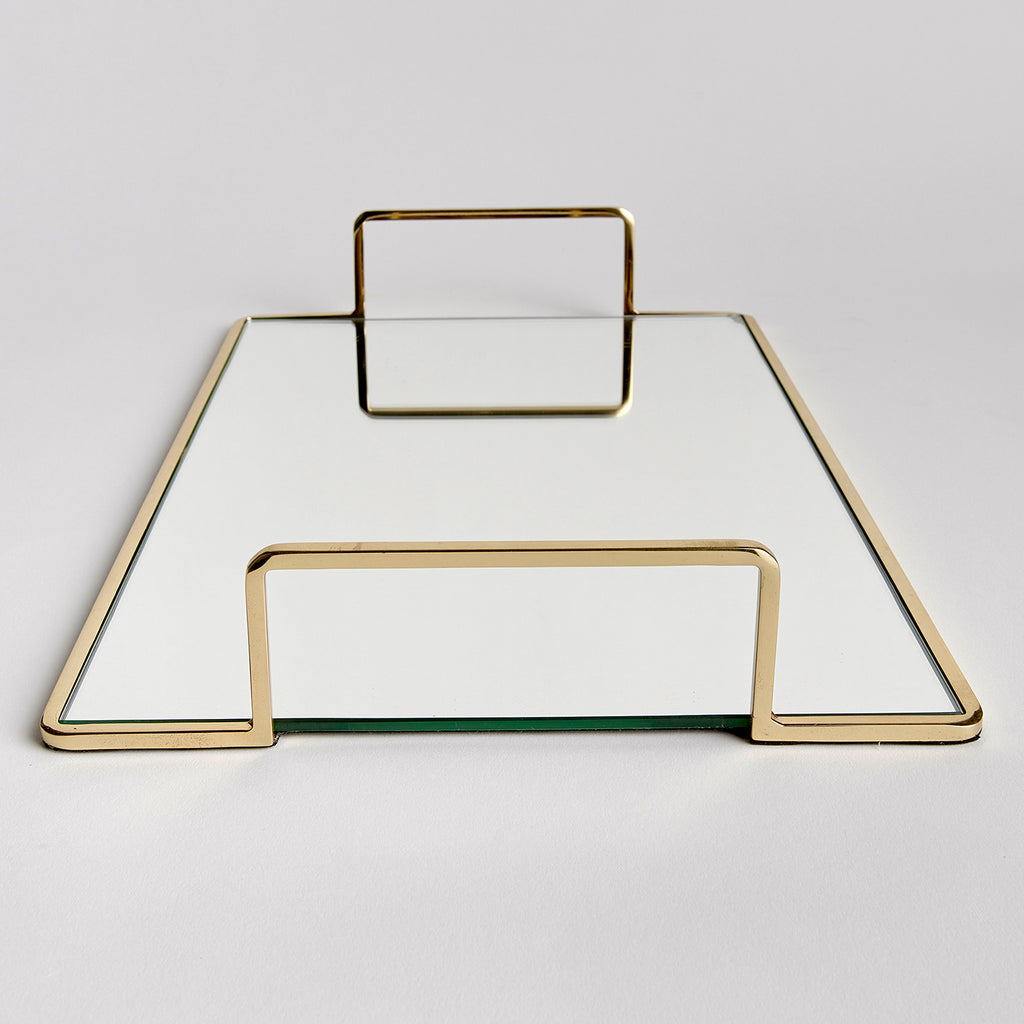 Smooth and streamlined, this mirrored tray is a clean and modern accent. Add to ottoman, side table or even the kitchen counter for a sleek look.