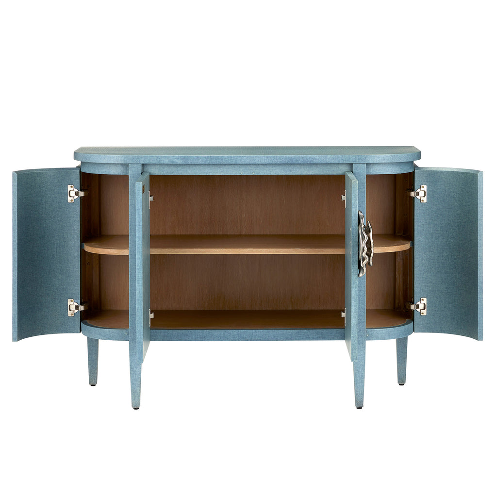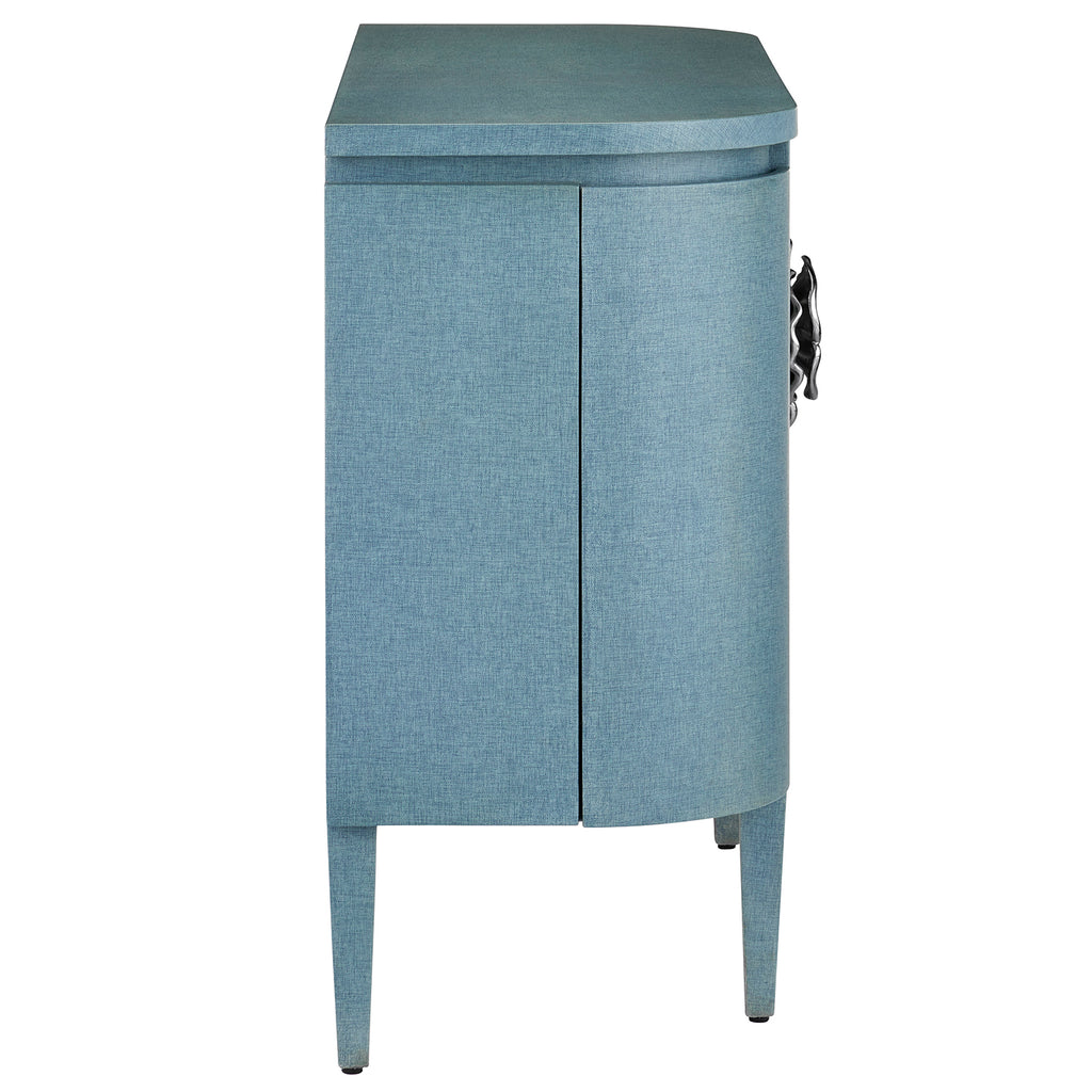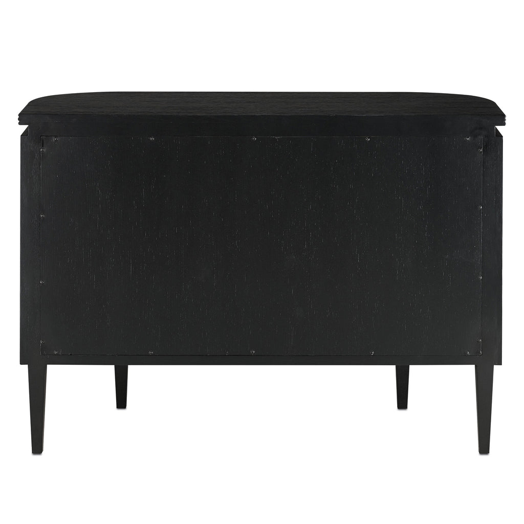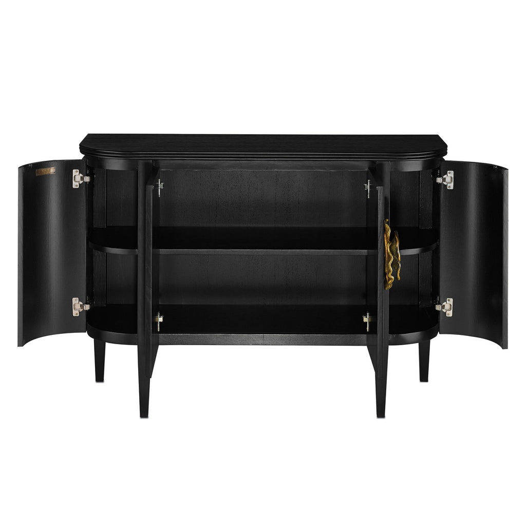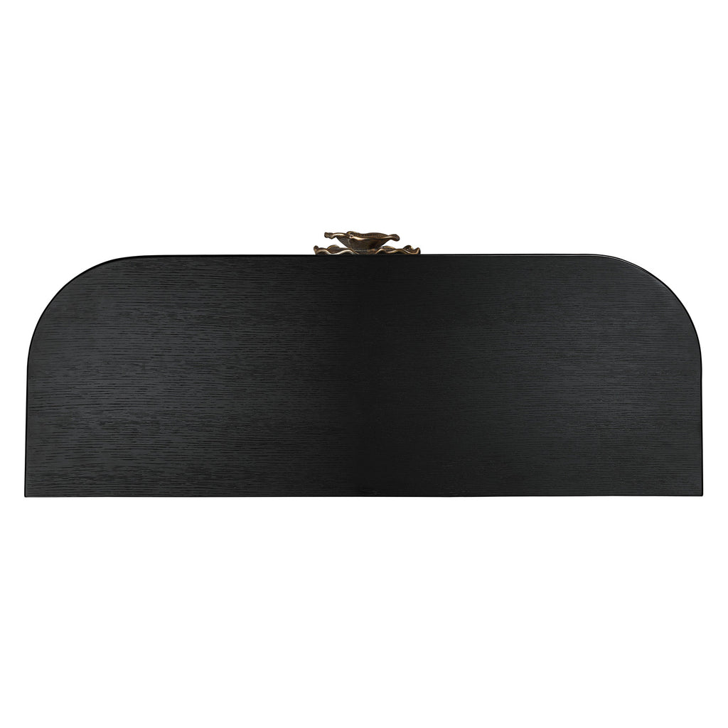 Stunning in its simplicity of lines and its artful hardware, the Briallen Demi-Lune has an elegant winter gray or caviar black stained wood and an impressively sized cast aluminum flower pull in steals the show. The stylized floral accent that serves as the pull makes this cabinet a bit of haute couture for a space. Design details include soft-close door hinges and adjustable glides. Place it in a beautifully designed boudoir for its form and function.