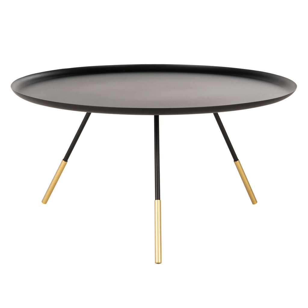 Ideal for daily gatherings, this contemporary coffee table blends form and function. Finished in a versatile silver or black hue, its large circular tray-style top is perfect for drinks and snacks. Chic metal gold cap legs add a touch of luxury.