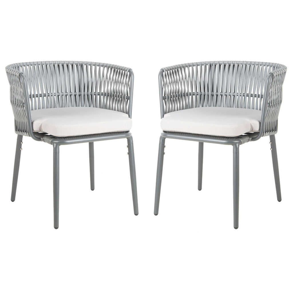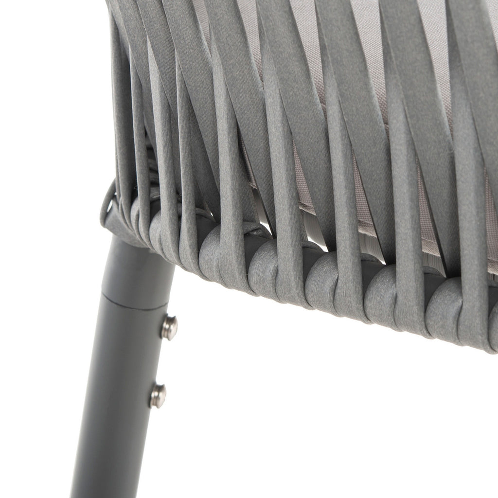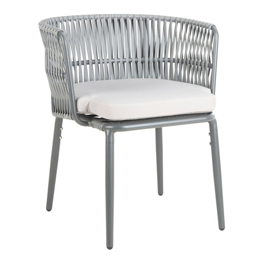This set of rope chairs is an instant classic. Simple, clean lines and a grey finish make it perfect for contemporary and traditional outdoor living. Crafted with wicker and nylon rope detail, it’s an ideal pairing of form and function. Sold as set of two.