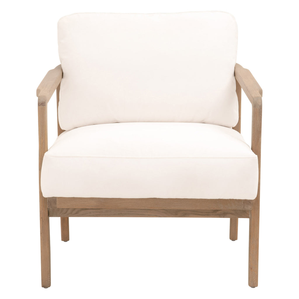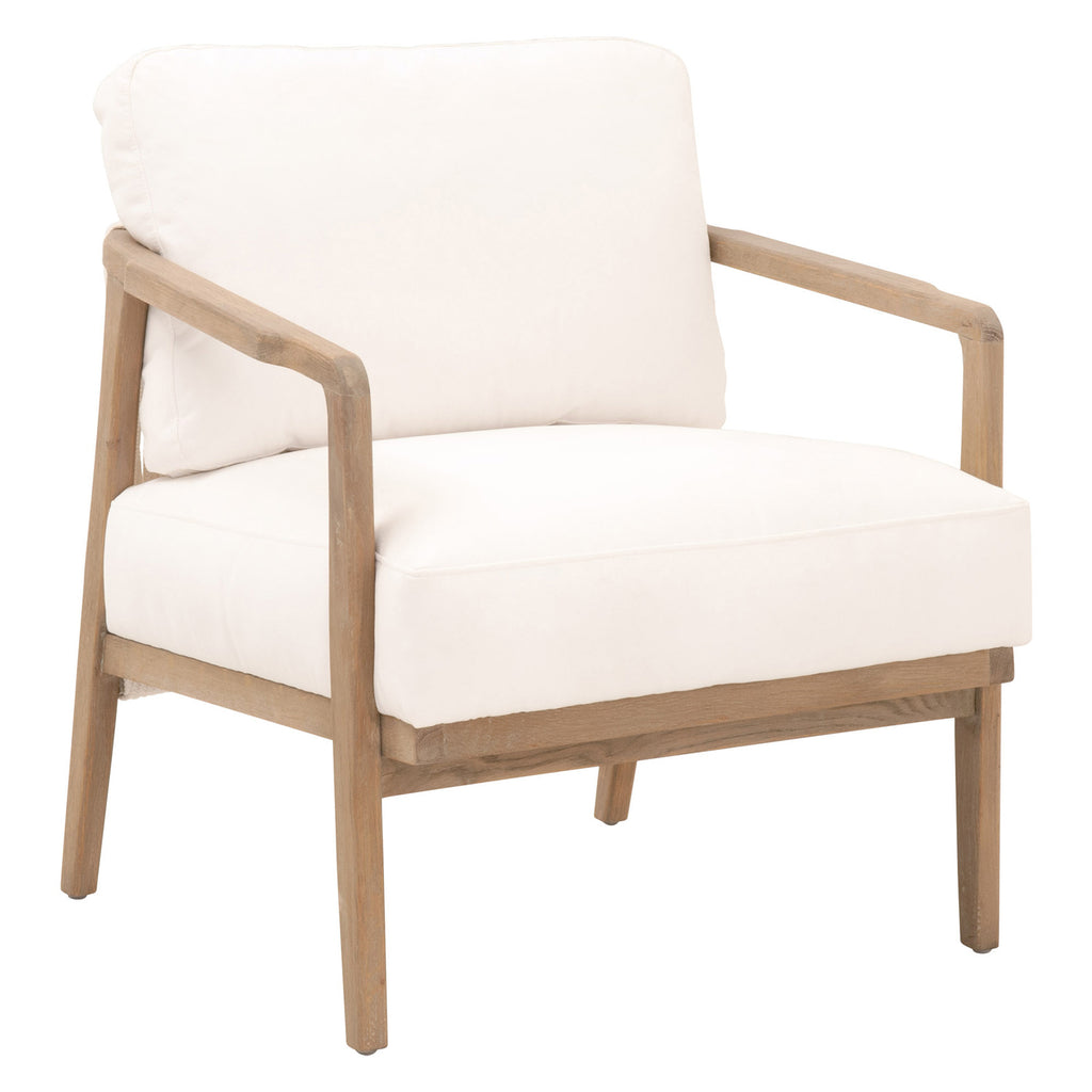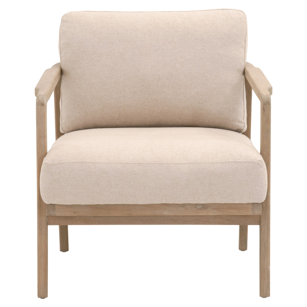 The Harbor club chair in transitional style featuring an intricate rope weave designed back, 100% linen upholstery, and a solid oak frame.