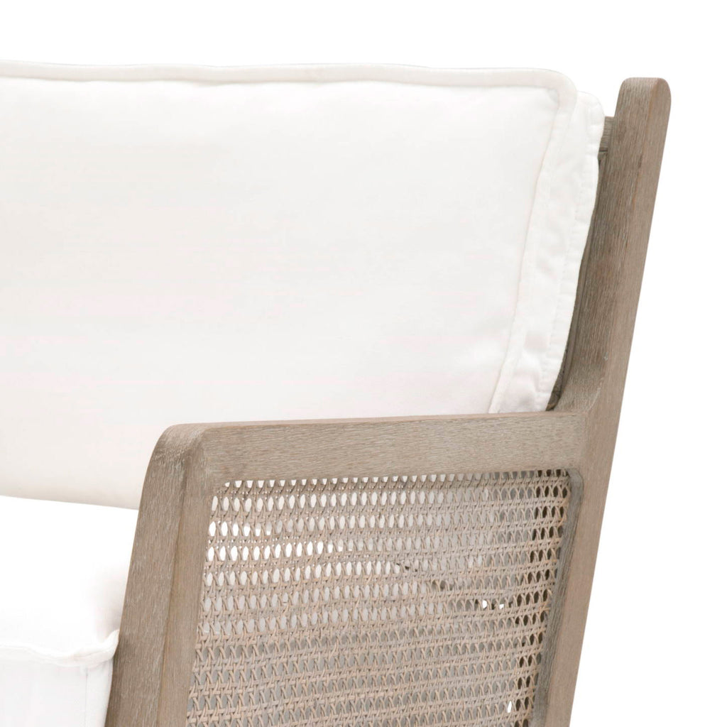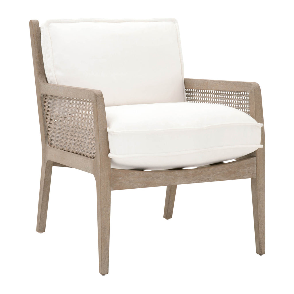 The classic look of a cane chair mixed with a modern frame with sleek lines make the Essentials for Living Leone club chair suitable for many living spaces. It features a removable seat and back cushion made of a luxurious Dark Grey Velvet or Live-Smart Peyton Pearl. The gorgeous cushions add contrast to the natural gray tones of the oak frame, cane backing and arm rests. The rich and calming tones of this chair make it a warm and inviting place to sit and enjoy your time. This club chair will be the perfect accent seating in an airy room filled with neutral tones.