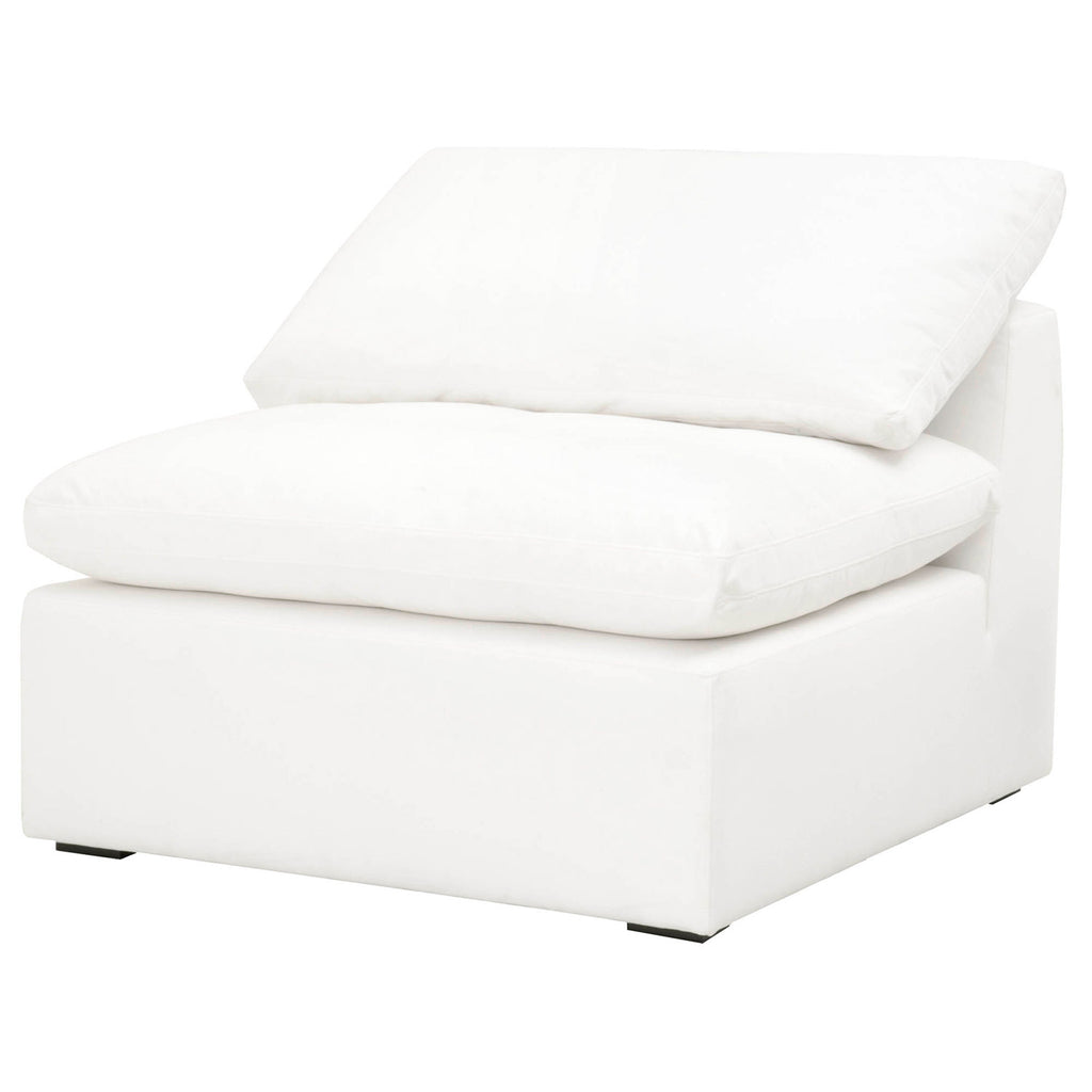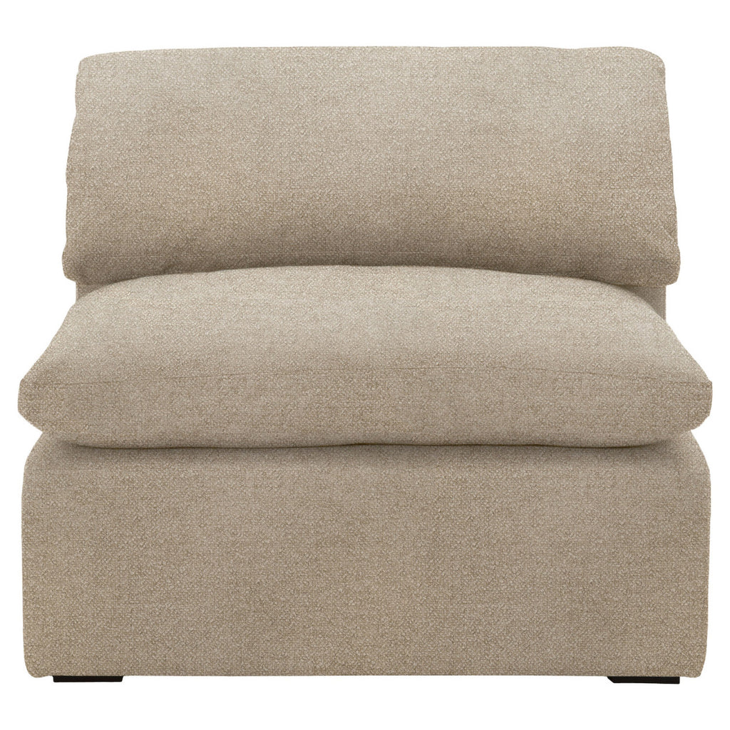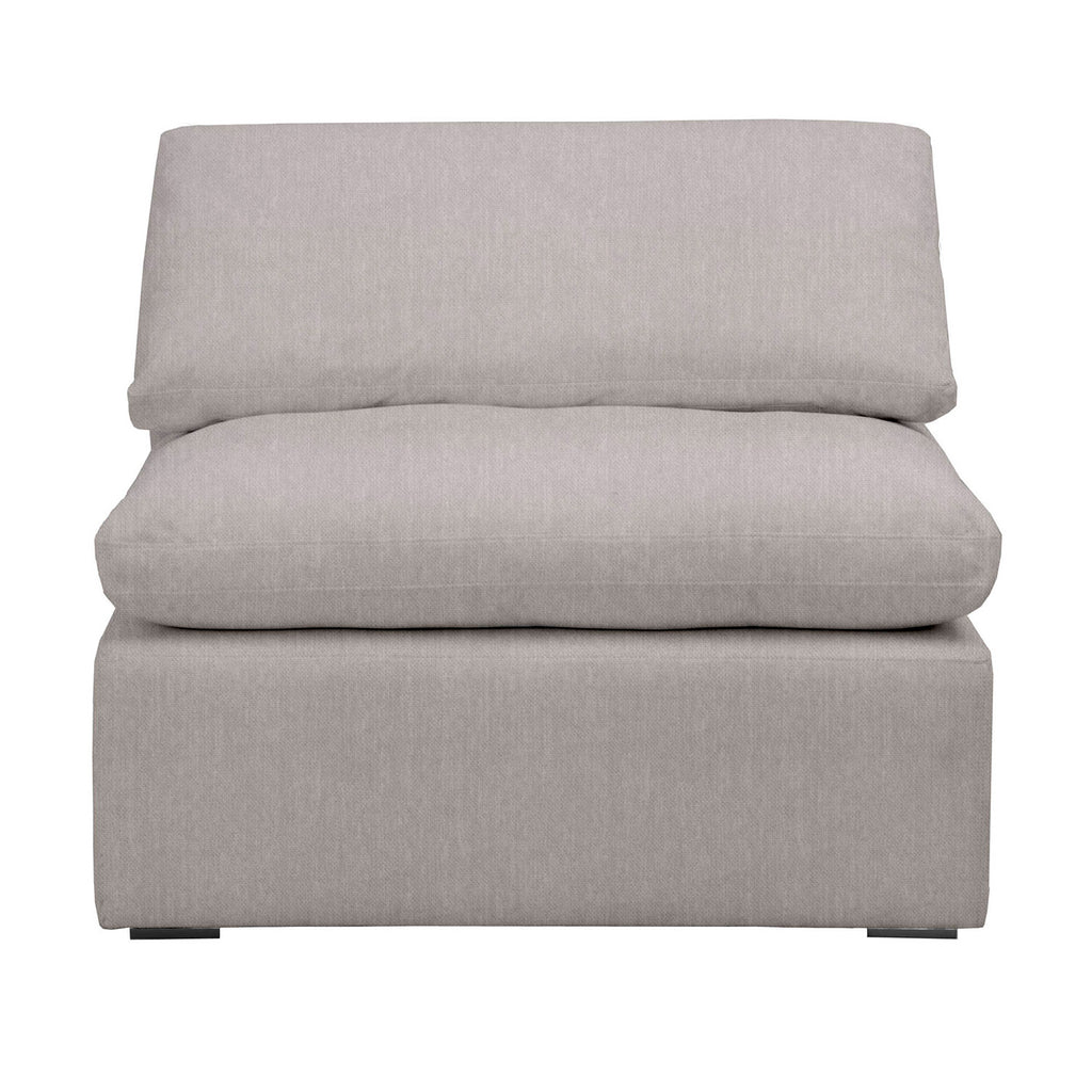 Add transitional style to your living room, family room, or den with the Essentials for Living Sky modular armless chair in Livesmart Peyton-Pearl fabric. With the seat cushion made of half down and half polyester, this chair is extremely comfortable to curl up and read a book or watch television on. It features reversible seat and back cushions, as well as ties to prevent the cushions from moving. Constructed with 3.8" coil sinuous springs and stain resistant fabric, this chair is meant for durability and dependability. Pairs nicely with sectional sofas and works great as additional seating.