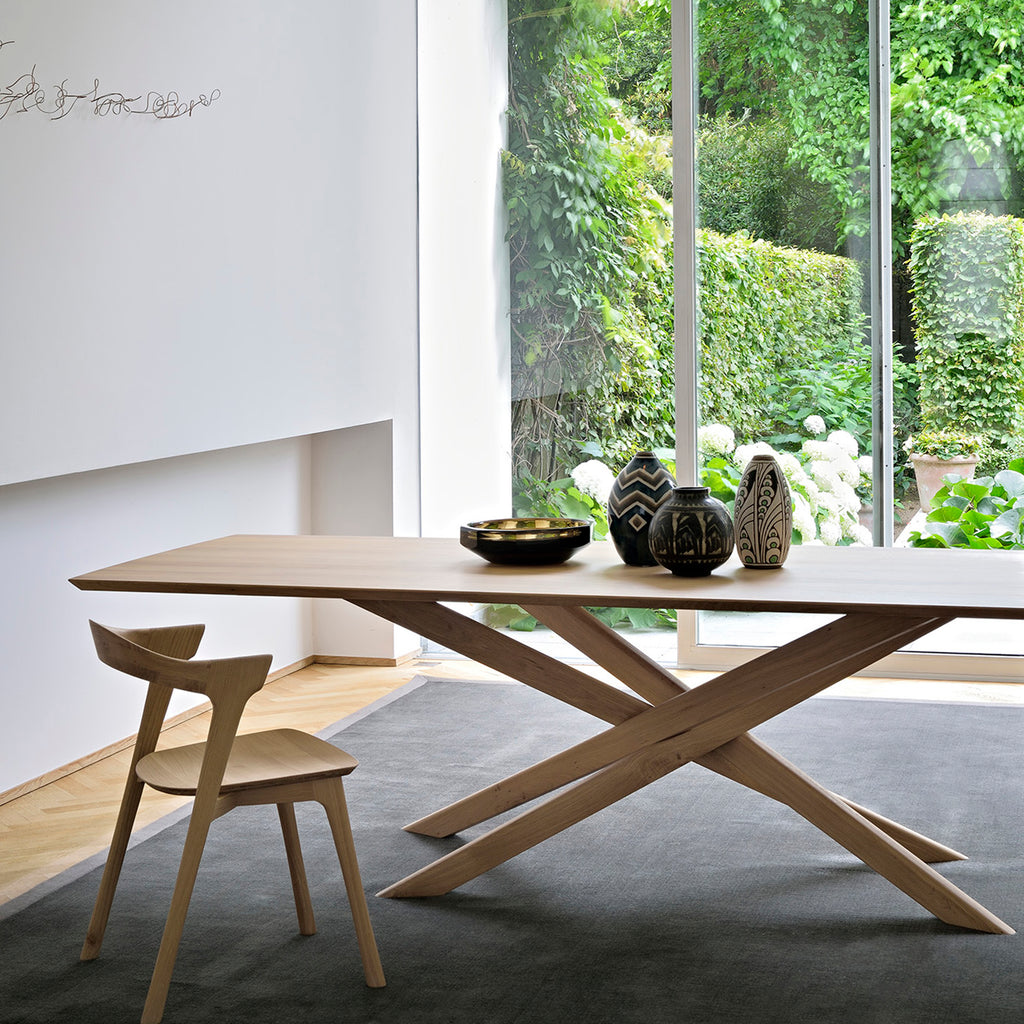 The Ethnicraft Mikado dining table, designed by Alain van Havre, has been one of our most recognizable designs for years. Its sculptural character is the result of a quest to find a balance between functionality and stability. Mikado’s legs interlock like a well-thought-out puzzle.