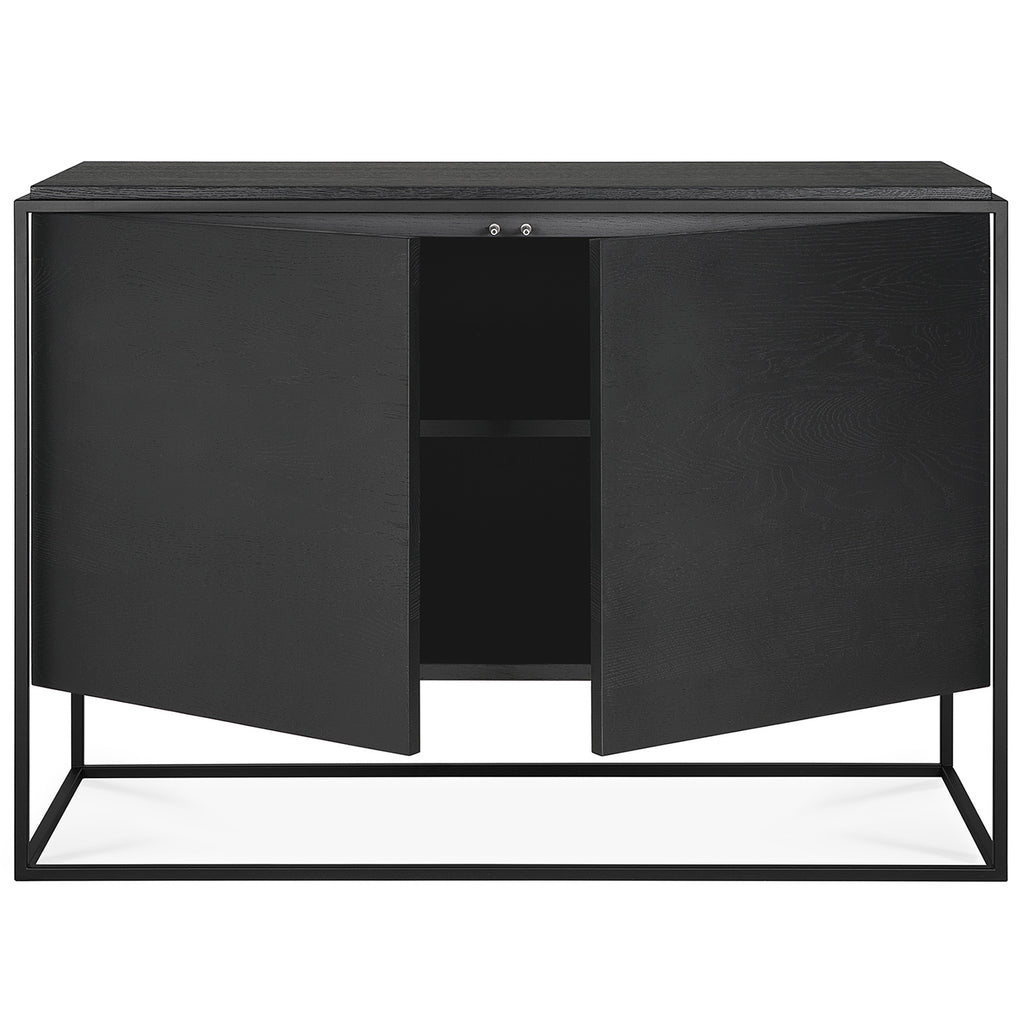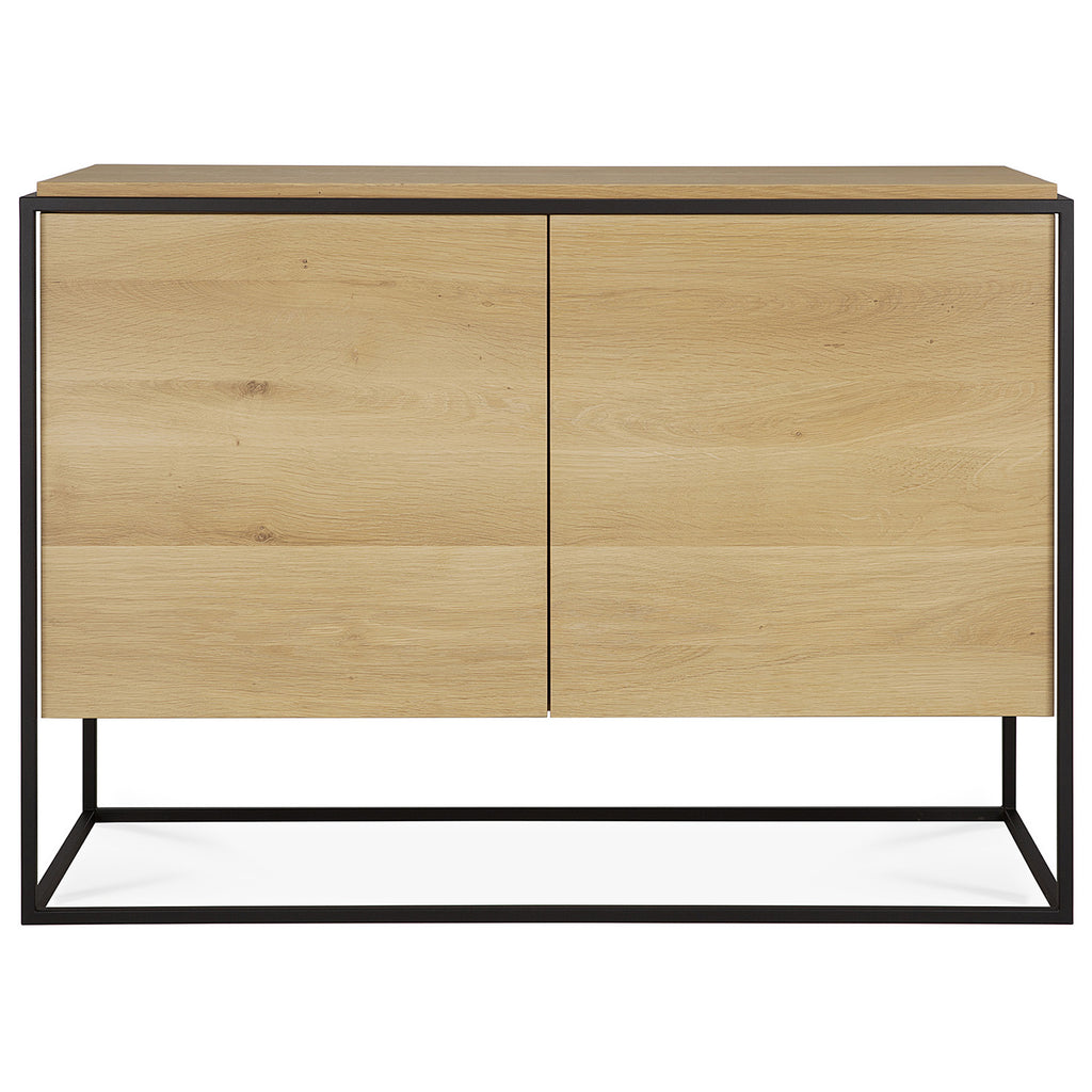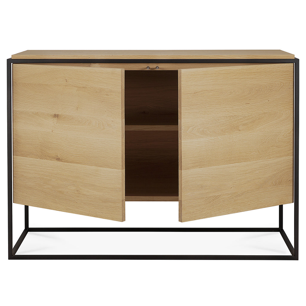 Practicality without sacrificing style. The contrasting characteristics of wood and the rectangular metal frame of the Ethnicraft Monolit sideboard create a unique backdrop for all modern media equipment.