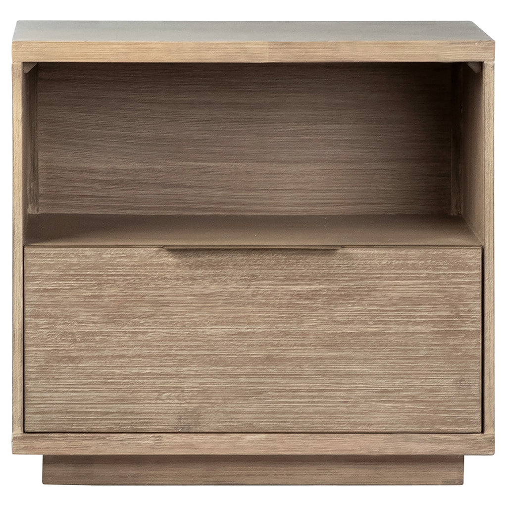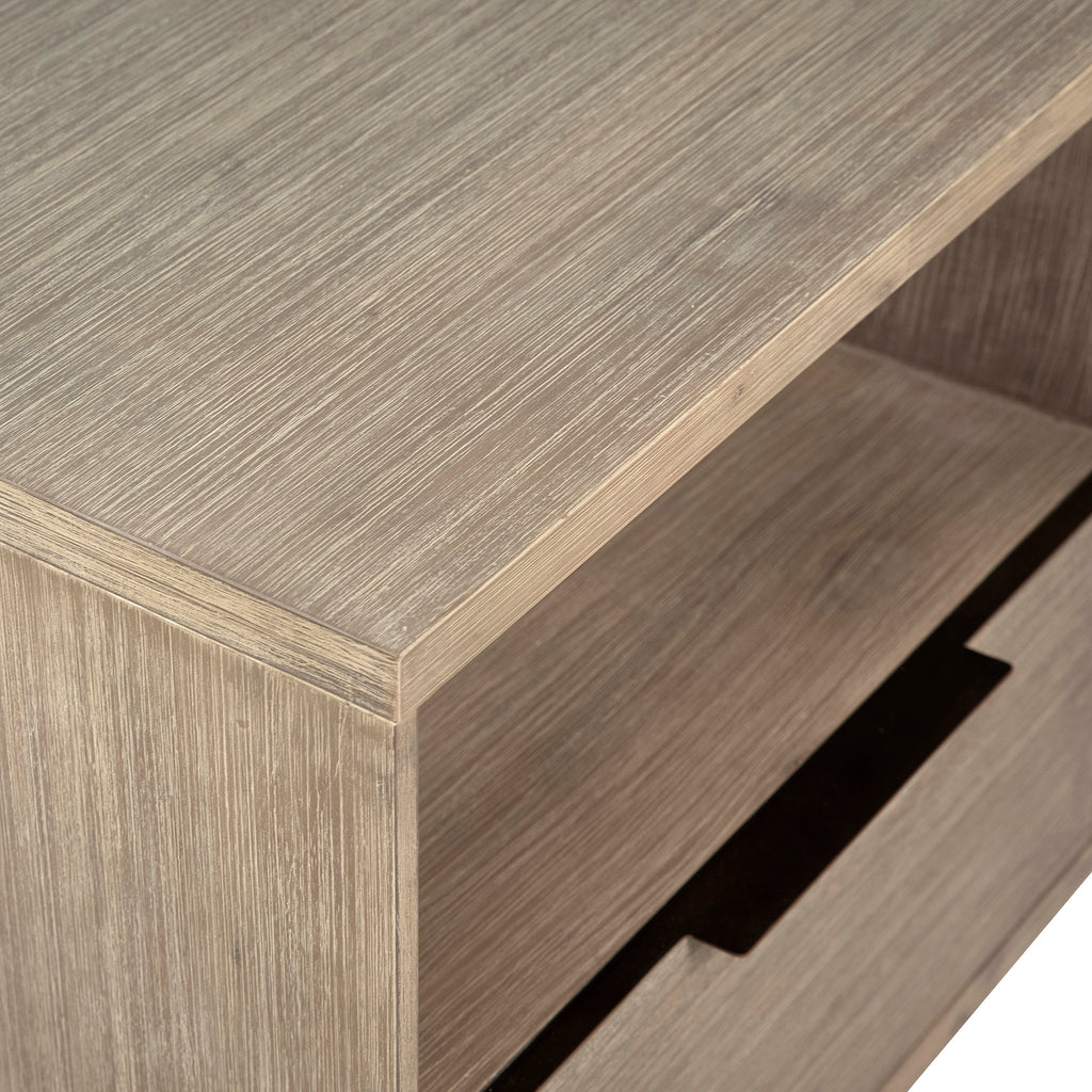 A clean-lined design lends modern style to this storage night stand. Showcasing the beautiful, natural grains and knots of the solid acacia wood. The light warm wash finish of the wood will brighten up your bedroom for an open and airy look.