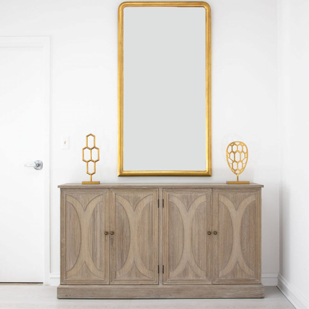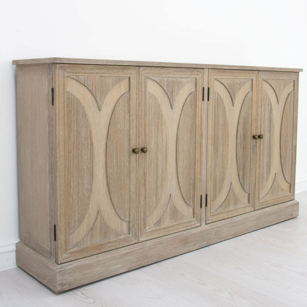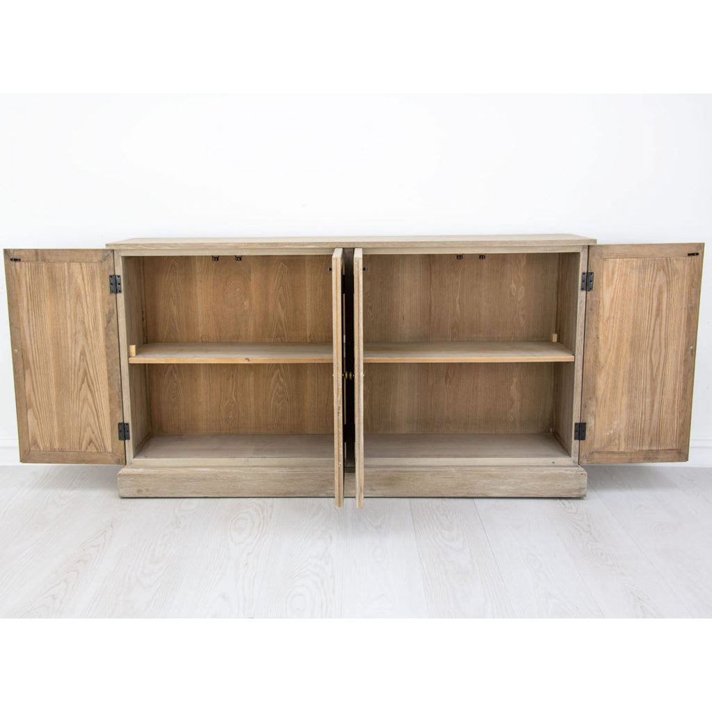 This buffet-sideboard table is a beautifully finished 4 door sideboard made from durable oak wood. The design of this transitional piece makes it a statement piece for years to come. The wood paired with the premium finish makes for a quality piece of furniture.