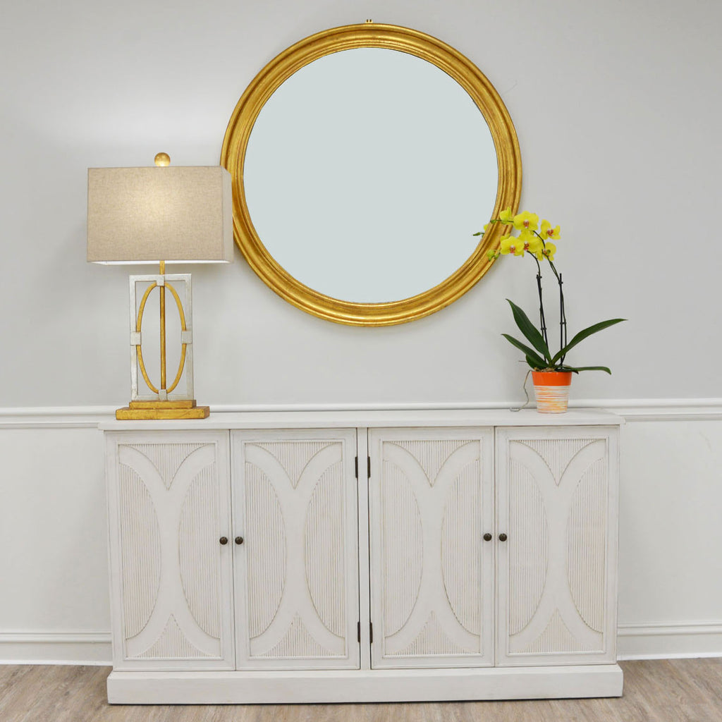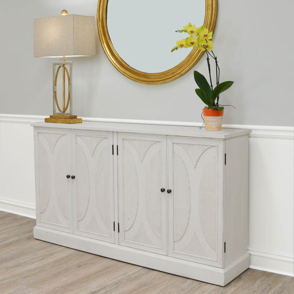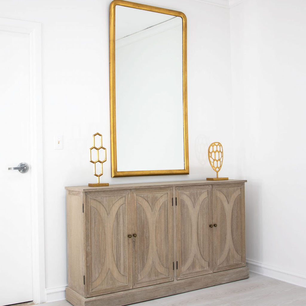 This buffet-sideboard table is a beautifully finished 4 door sideboard made from durable oak wood. The design of this transitional piece makes it a statement piece for years to come. The wood paired with the premium finish makes for a quality piece of furniture.