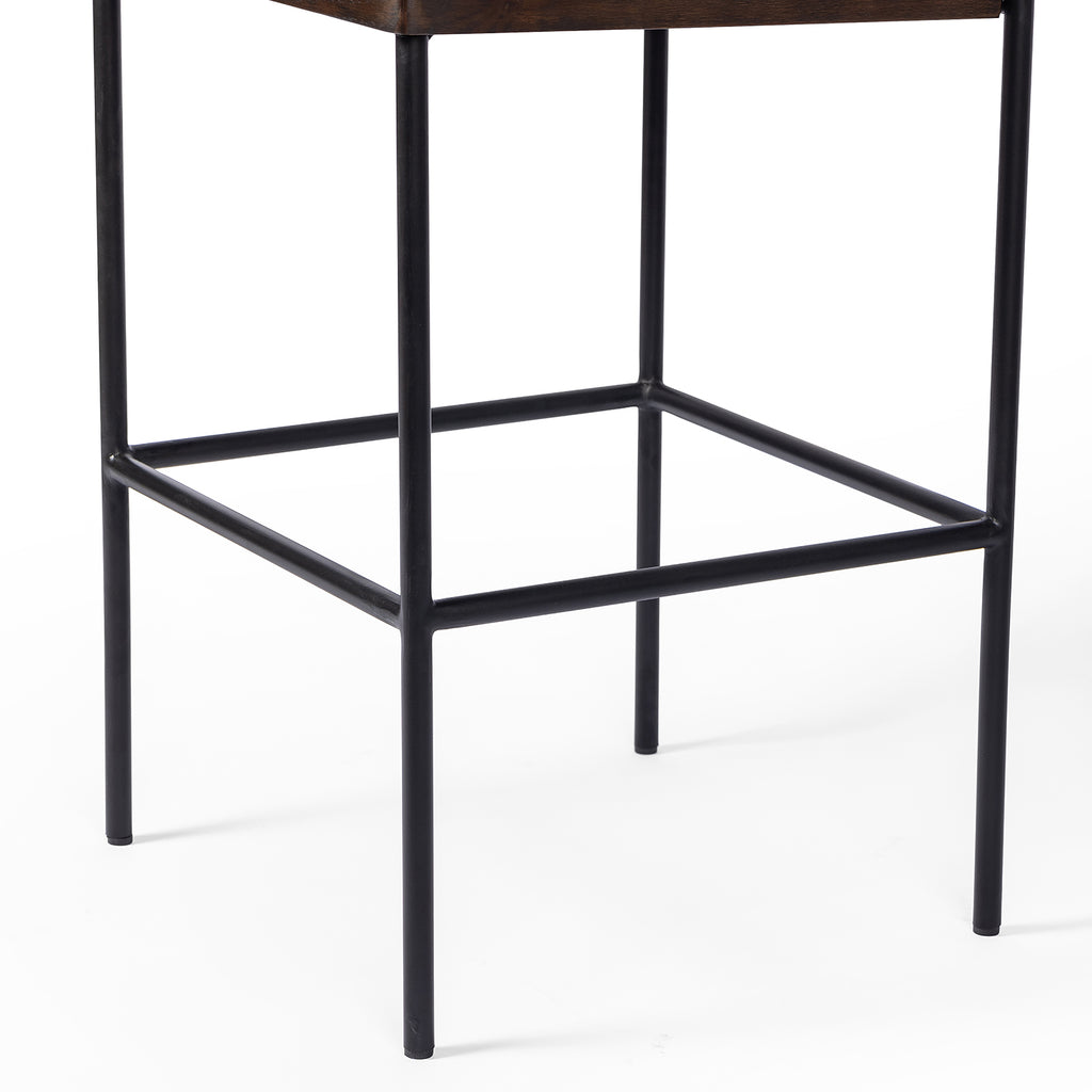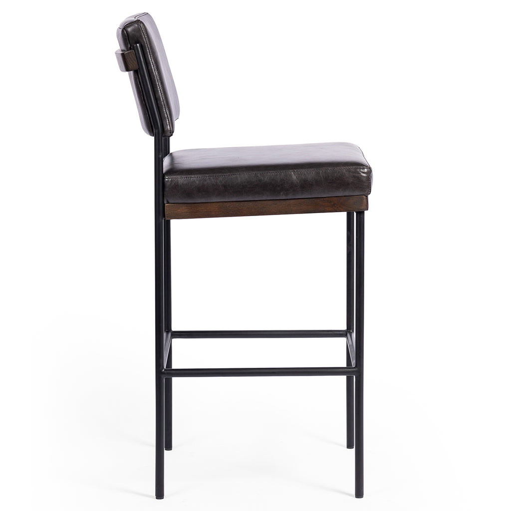 Simple and streamlined with thoughtful details. Slim, black-finished round stock iron solid wood decking, plus top-grain leather seating for modernity. A stylish staple for any counter.