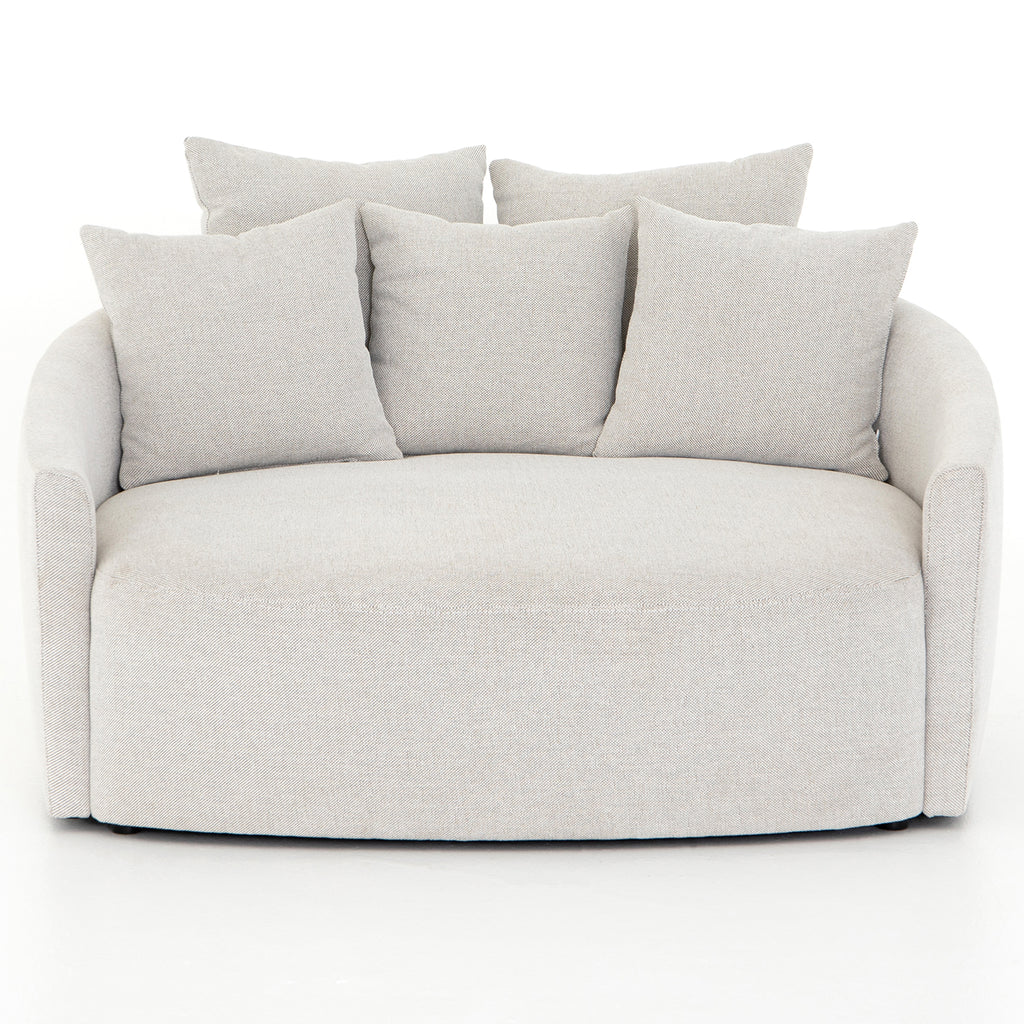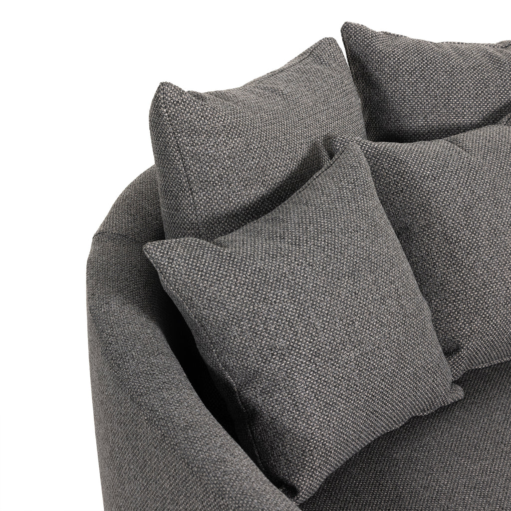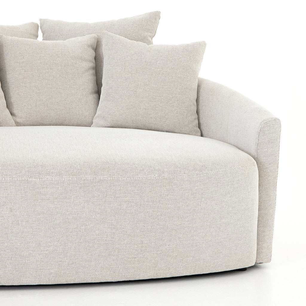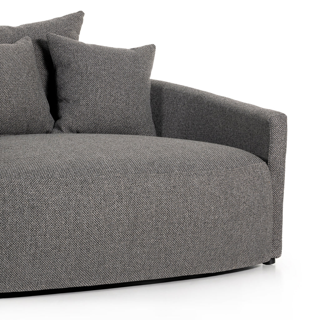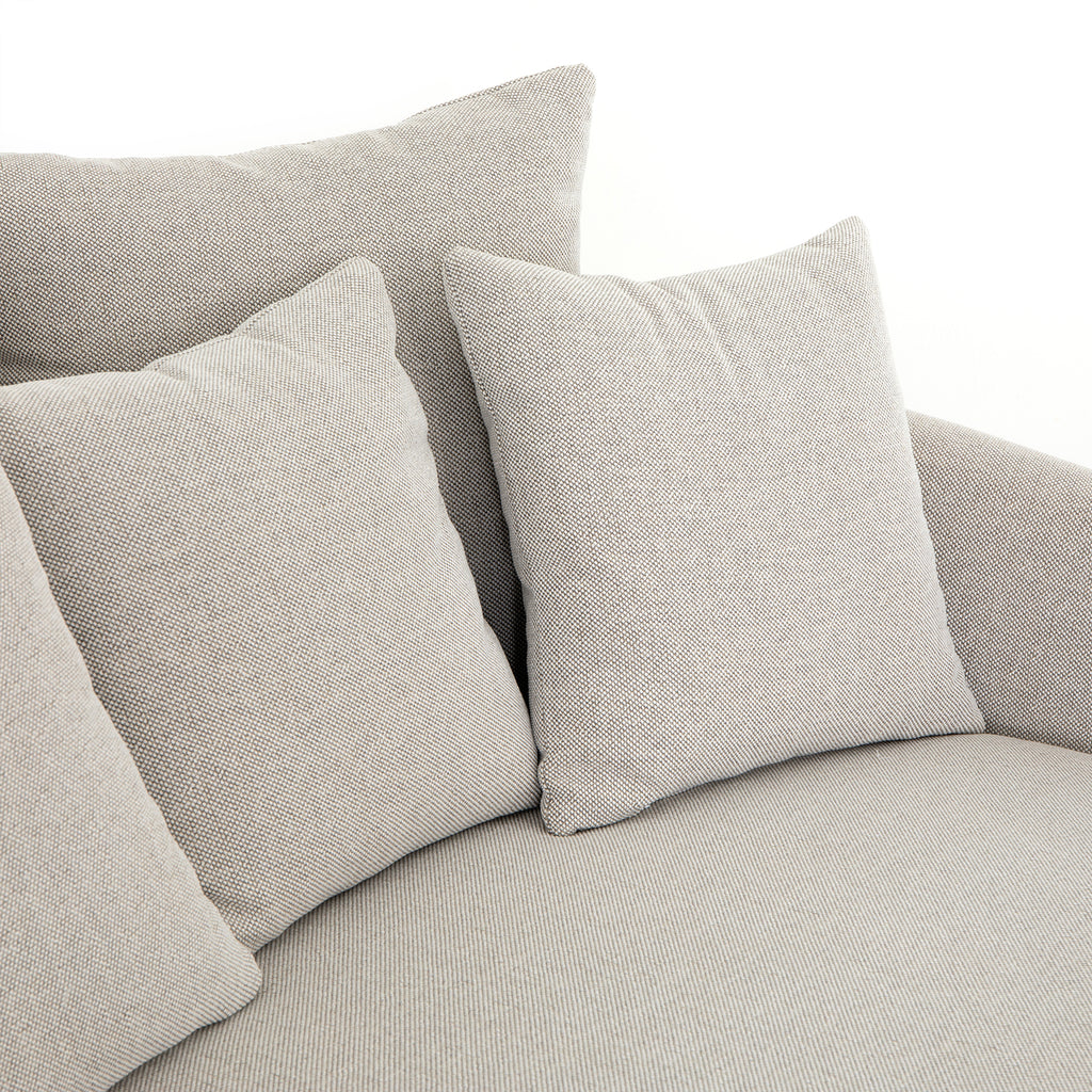 Roomy style. High-performance fabric covers a dramatic U shape for a spacious, sink-in sit. Throw pillows present an added touch of comfort to this sensibly styled media lounger, perfect for movie nights.