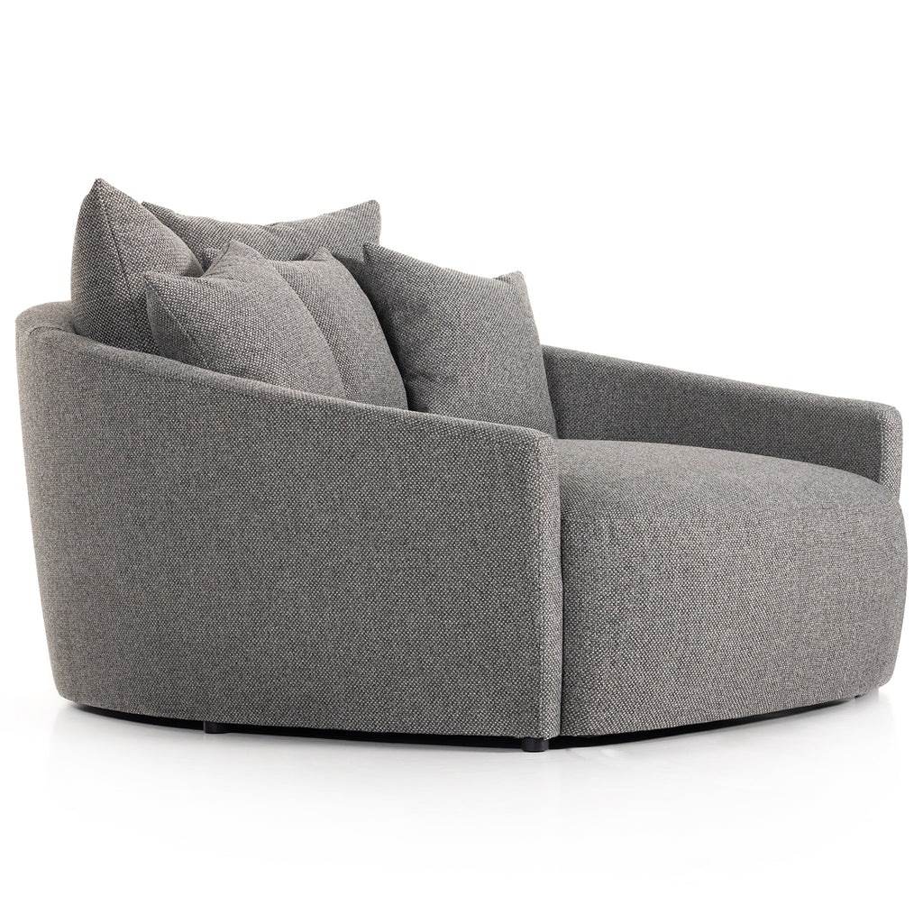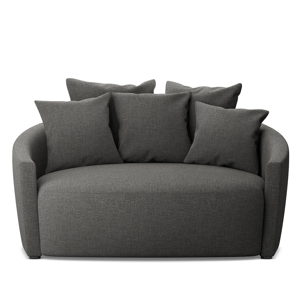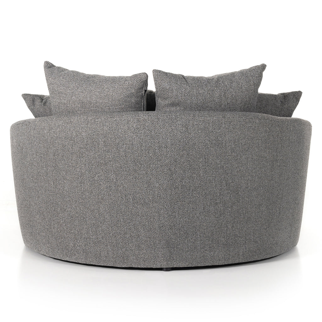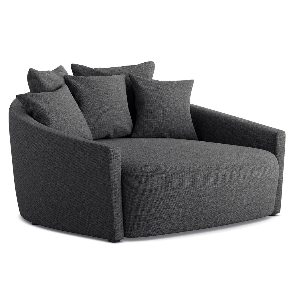 Roomy style. High-performance fabric covers a dramatic U shape for a spacious, sink-in sit. Throw pillows present an added touch of comfort to this sensibly styled media lounger, perfect for movie nights.