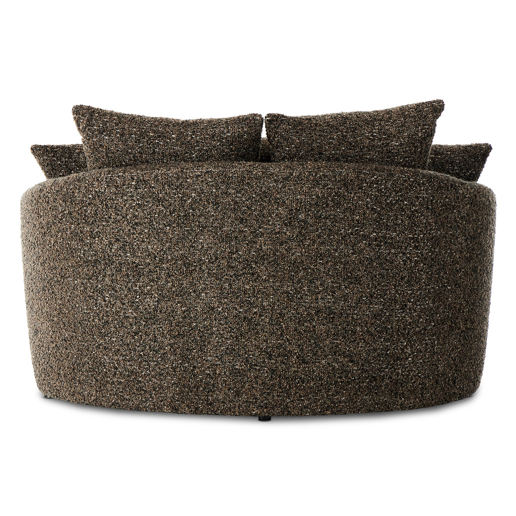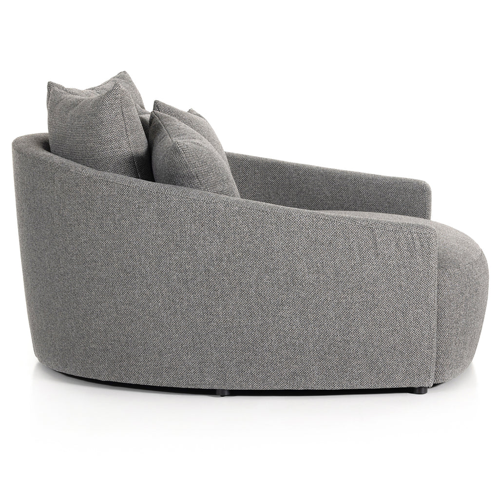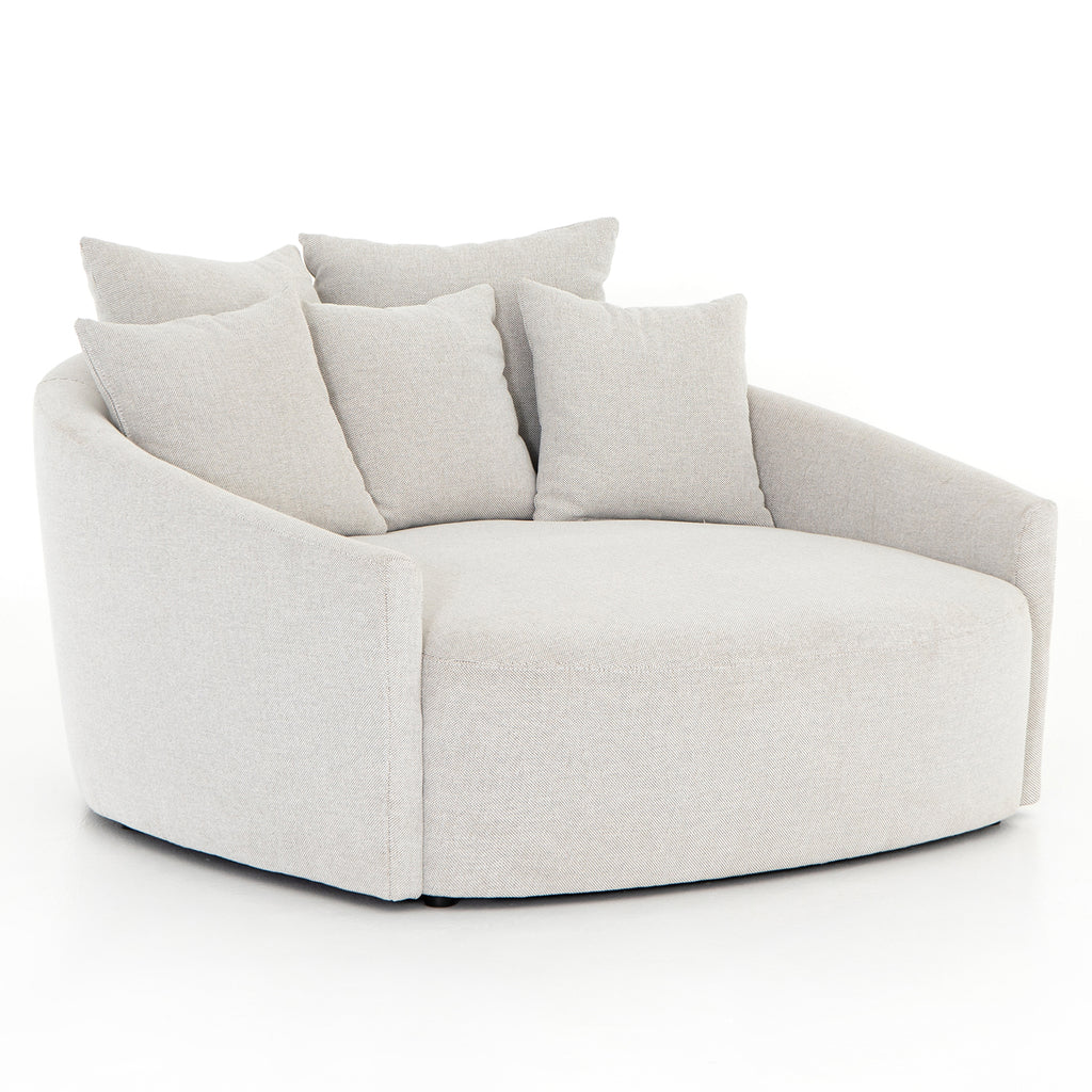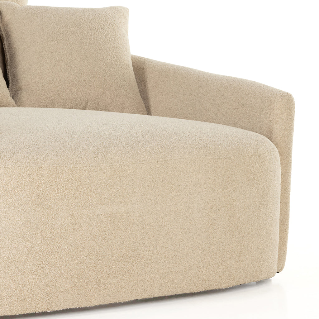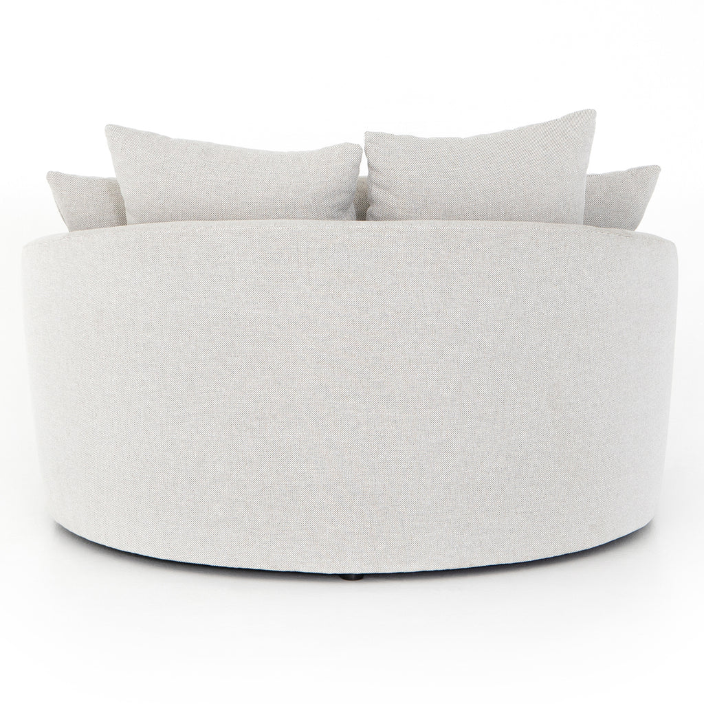 Roomy style. High-performance fabric covers a dramatic U shape for a spacious, sink-in sit. Throw pillows present an added touch of comfort to this sensibly styled media lounger, perfect for movie nights.