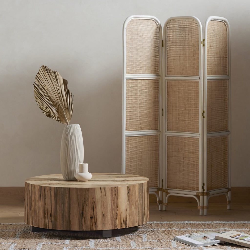 Stunning forces of nature are captured in a coffee table, as spalted primavera wood is hand-shaped into a cylindrical silhouette. Reflective of woods' natural character, a slight color variance is possible.