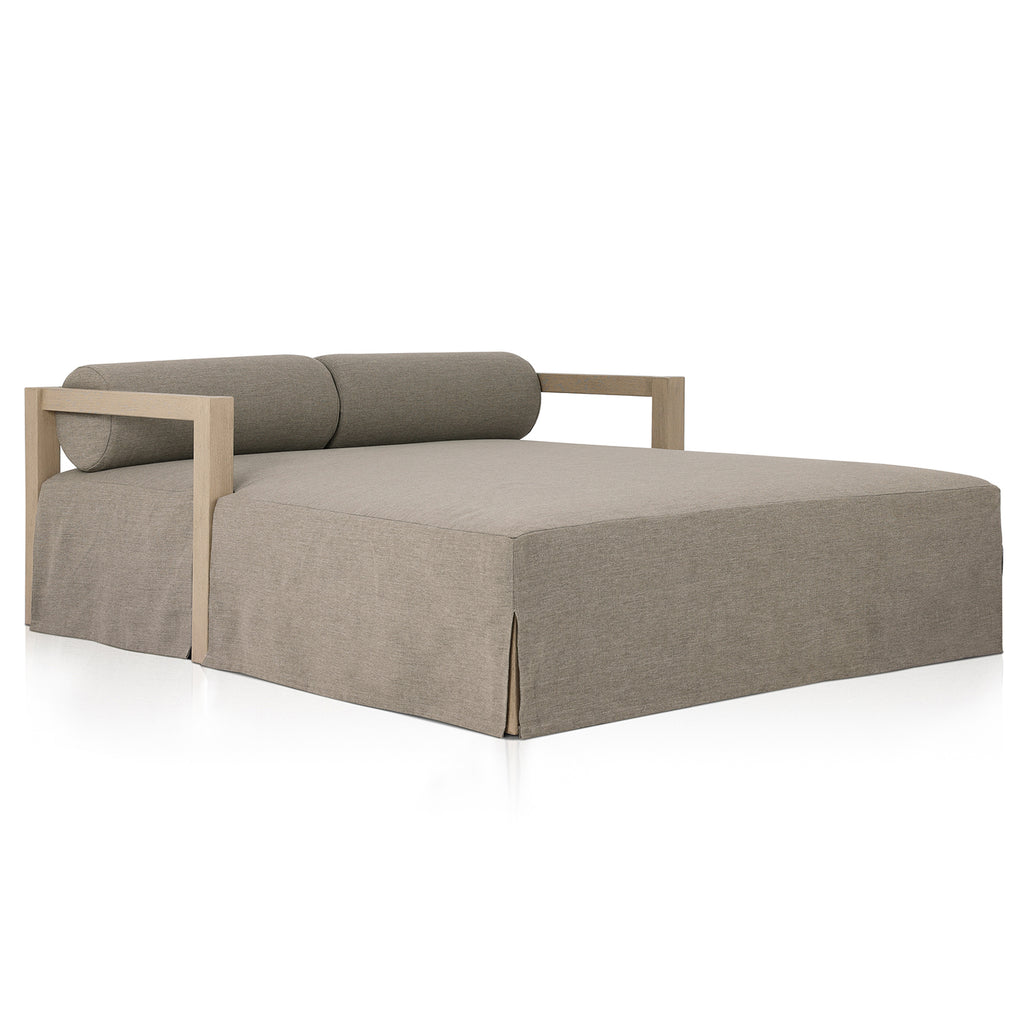 A soft, durable slipcover brings a complementary casual and laid-back look to structured framing of FSC®-certified teak. A bolster back cushion offers support and comfort in this outdoor daybed. Made in Italy, this sustainably made fabric is antimicrobial and highly resistant to sunlight, abrasion and chlorine. Cover or store indoors during inclement weather and when not in use.