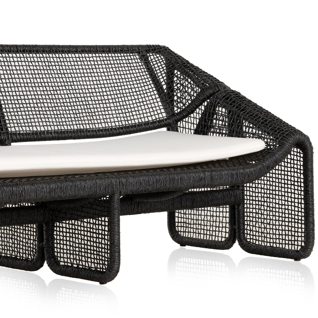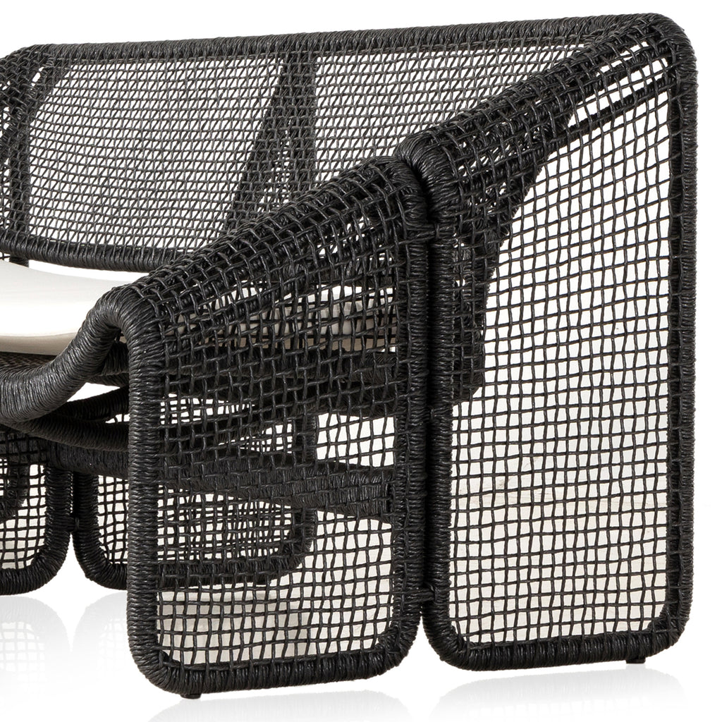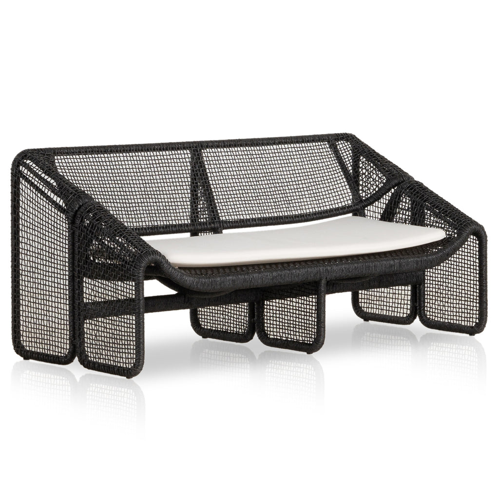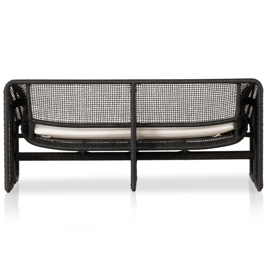 Great texture for the great outdoors in a sofa silhouette. Woven all-weather wicker forms a light, hyacinth-like frame for a durable seat cushion, spurring a grand, shapely look and feel. Cover or store indoors during inclement weather and when not in use