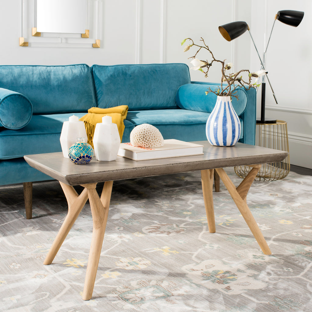 Bring contemporary style to any space with this concrete indoor-outdoor coffee table. Its dark grey concrete construction and beautiful natural oak finish create an instant focal point in the modern living room or an elegant outdoor entertaining area.