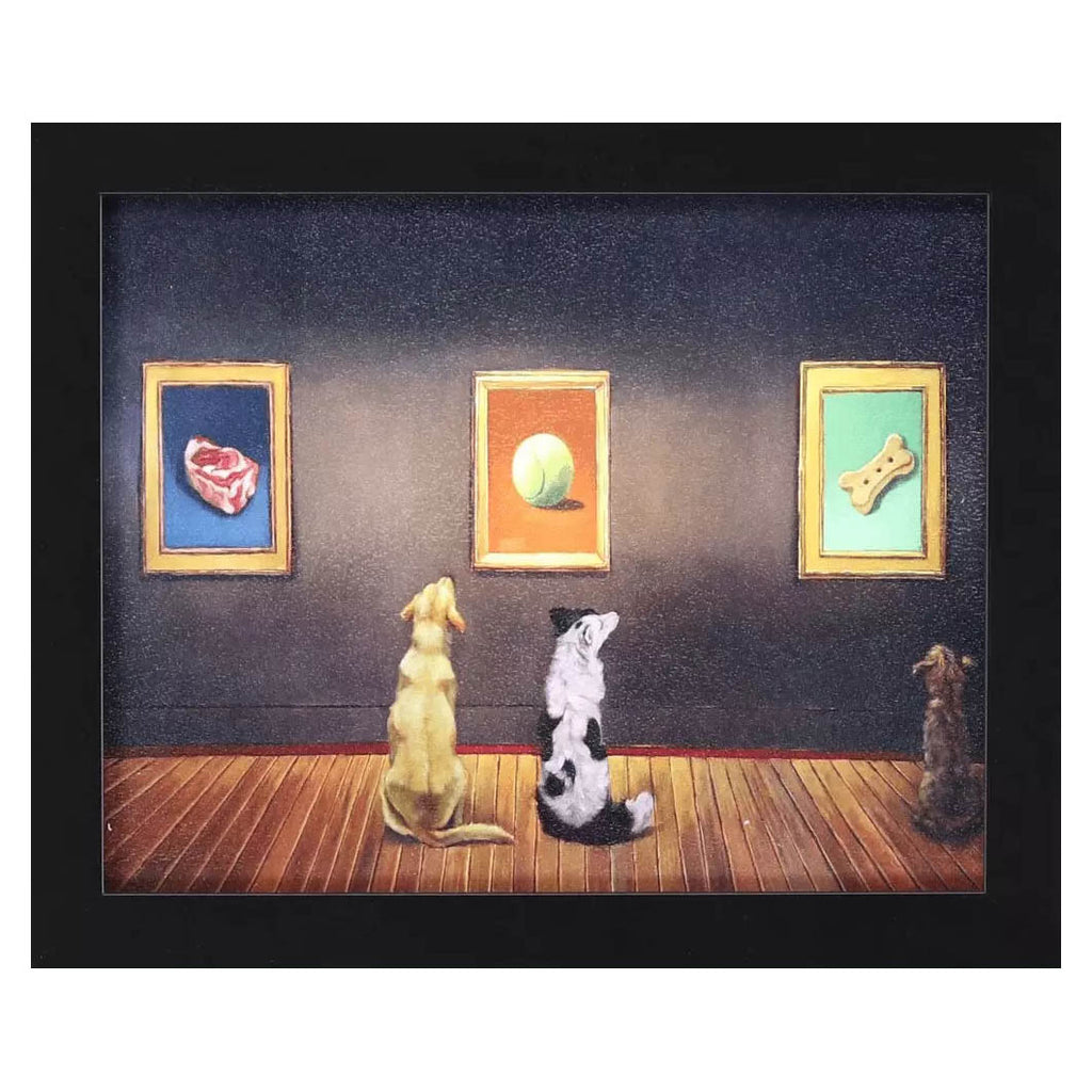 A quirky animal print features a hand applied enhanced gel finish. Framed in a modern flat black moulding.