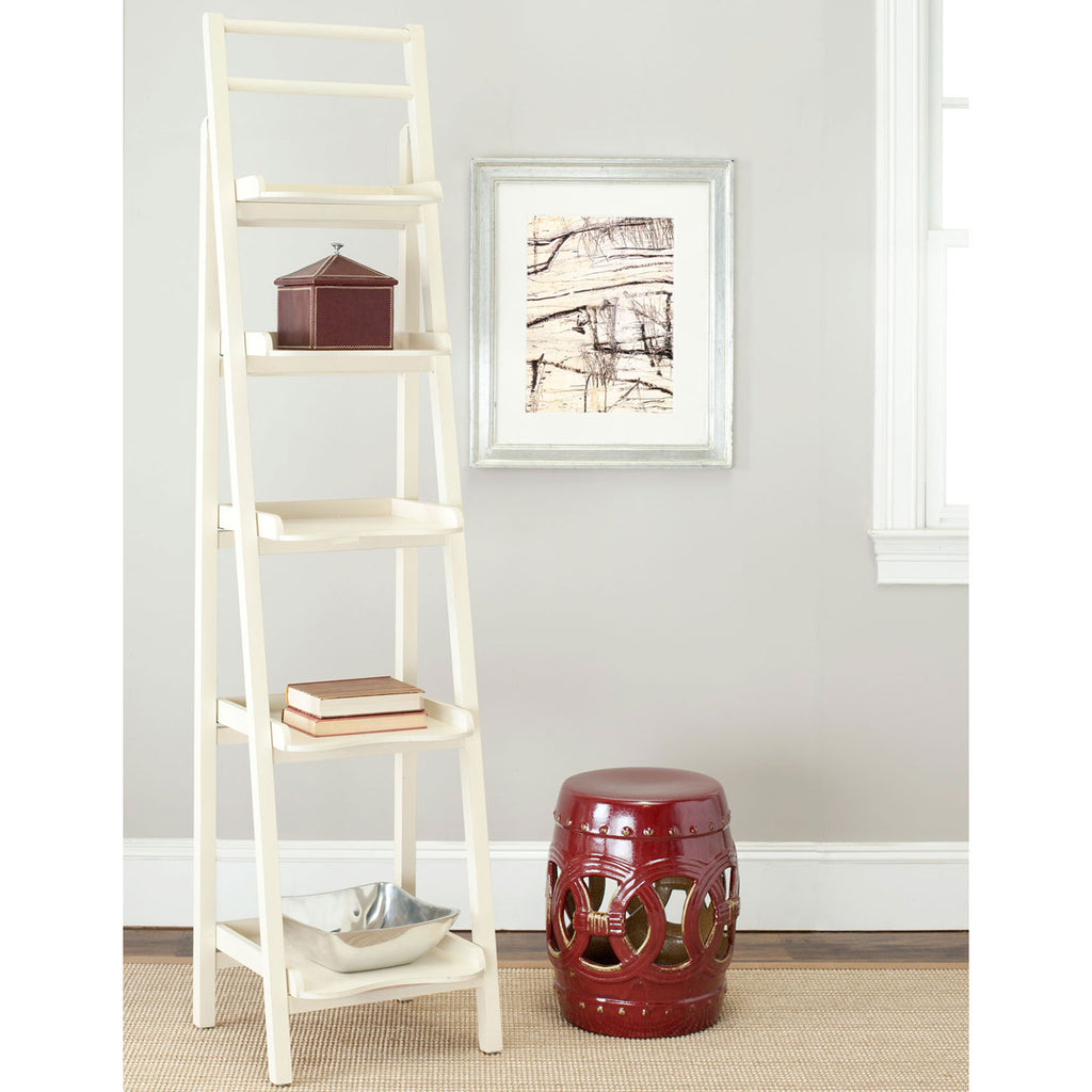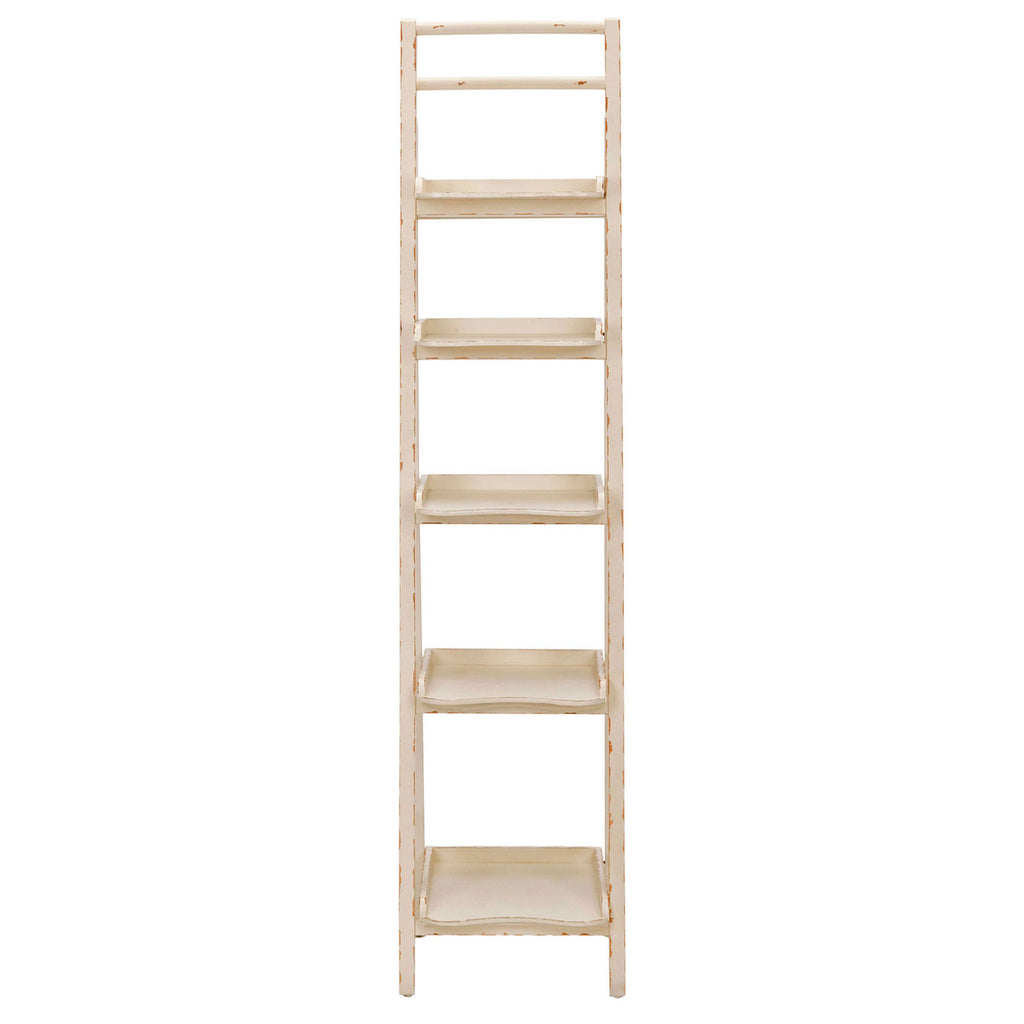 It’s a tall order but this leaning etagere has enough backbone to get the job done. Crafted with pine wood in a beautiful distressed ivory finish, its multiple shelves and chic, casual style are perfect for displaying books, magazines, and all of life’s modern accessories in the study, kitchen, or living room.