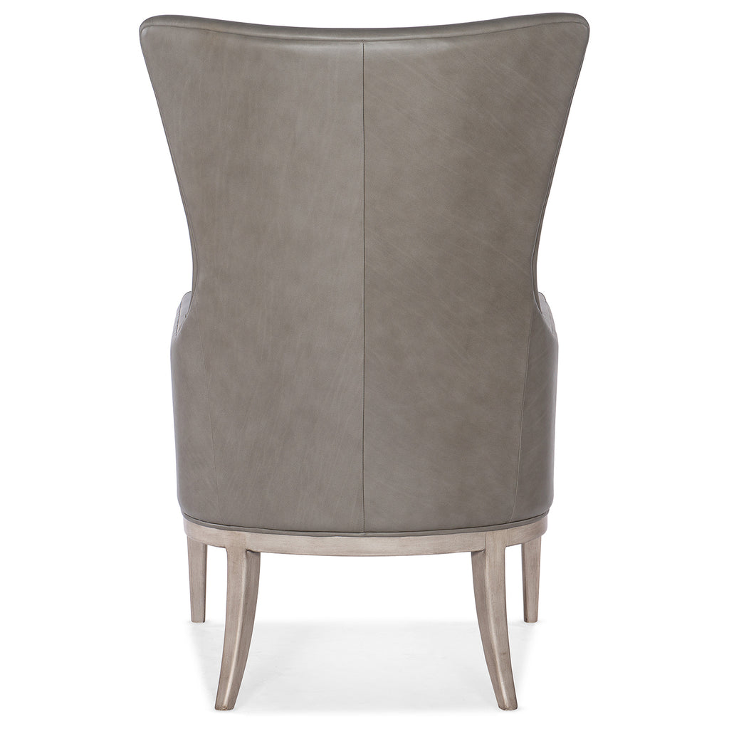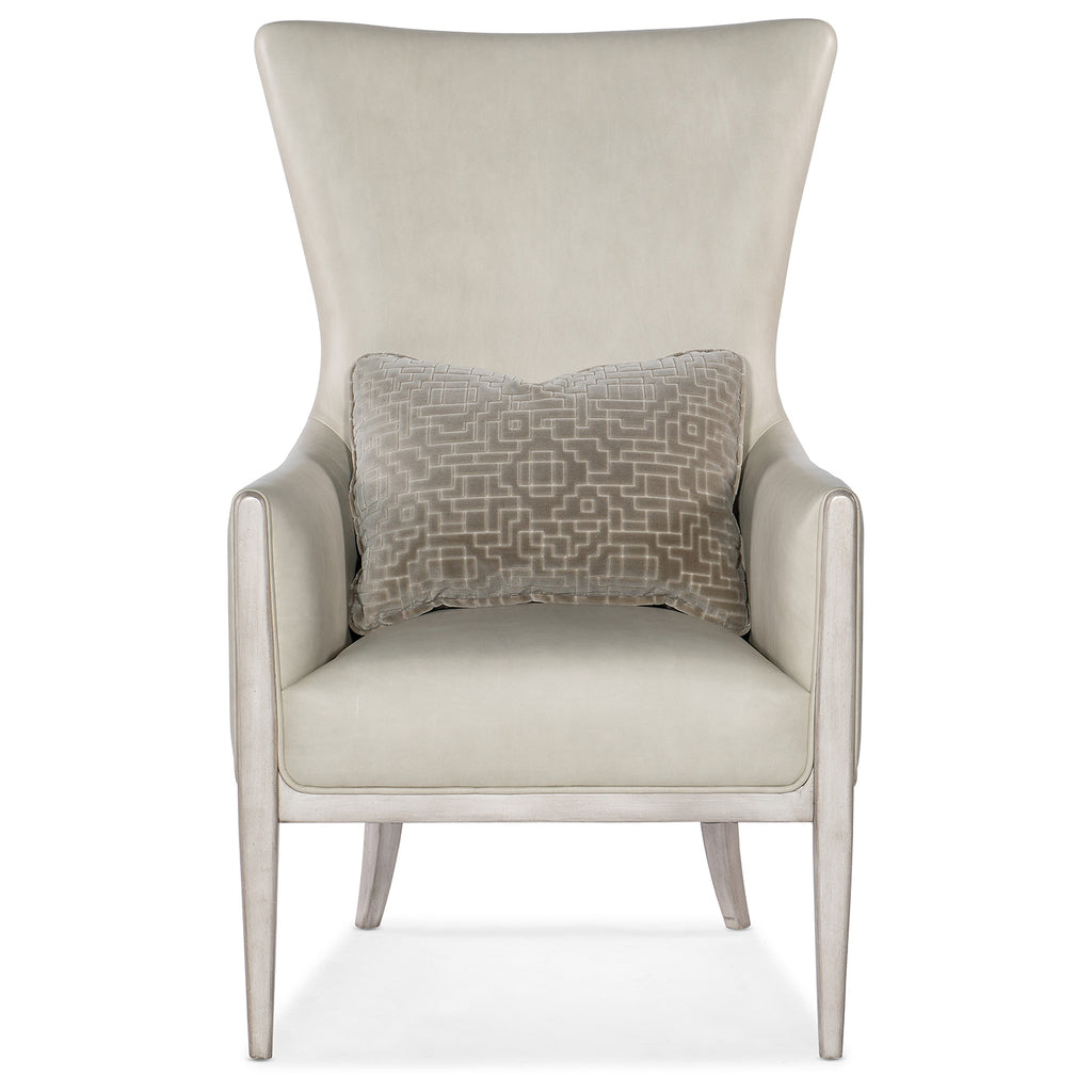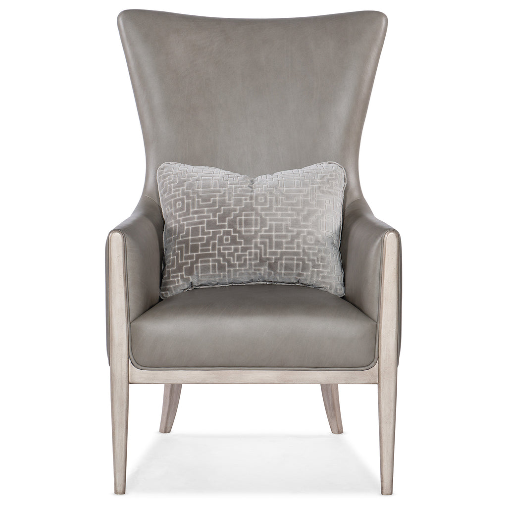 In a stately yet serene silhouette, the Kyndall Club Chair has a tall, shaped wing-style back and is covered in Semi-Aniline Top Grain Leather leather. A fabric kidney pillow is included for a fashionable accent. Legs are in a light wood finish.