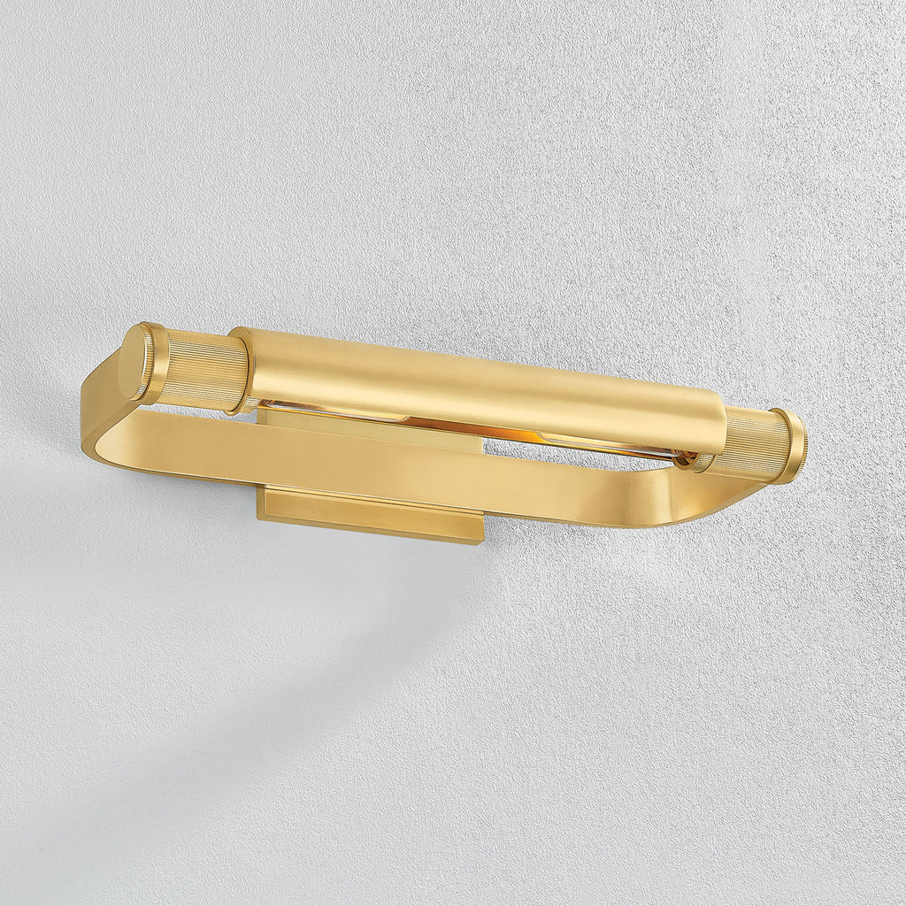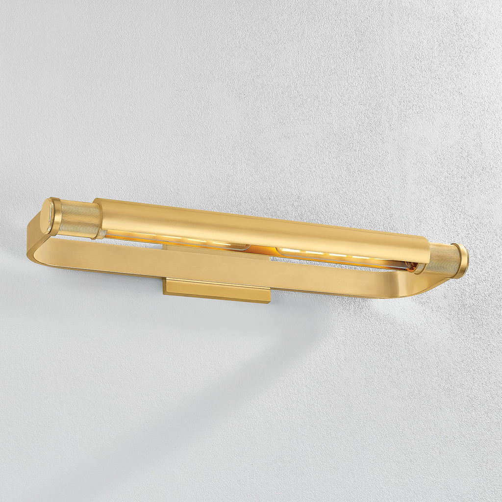Renowned for built-to-last quality with a timeless feel, Hudson Valley offers a modern lighting collection with elegant touches, recalling vintage inspiration. Modern meets rustic in this nautical-inspired flush mount. A fresh take on a lighting essential, Elm Park blends innovation and sophistication with its discreet 2-light composition. This picture light features clean lines and machine-knurled details with a choice of an Aged Brass or Distressed Bronze and Aged Brass finish. Choose from two sizes of Elm Park to suit your needs.
