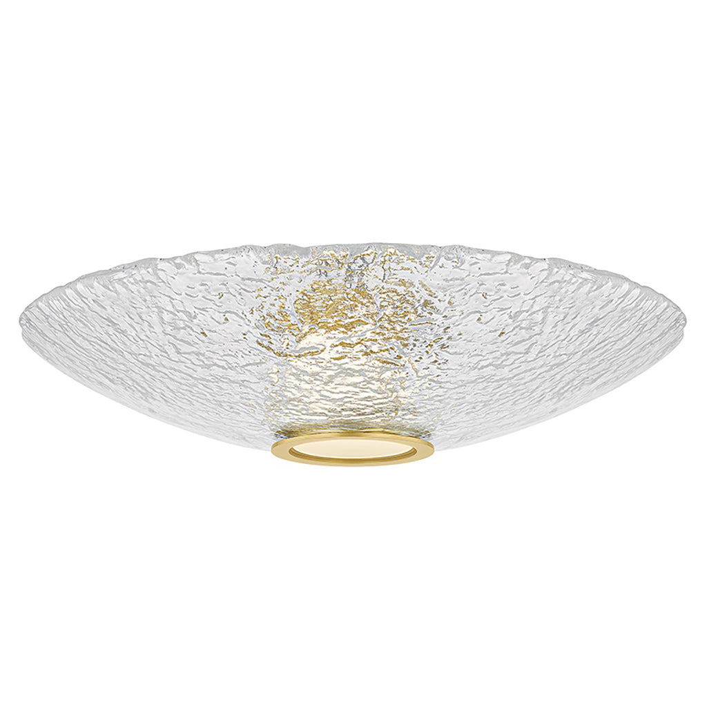Modern and elegant, Hudson Valley LIghting New Haven is an essential flush mount with a unique layered glass design. An inner cylinder of clear etched glass is revealed through an outer layer of specialty Piastra glass. The translucency of these layers, paired with the intentionally exposed hardware, gives New Haven an unexpected, contemporary silhouette. Integrated LED and an Aged Brass finish complete this sophisticated ceiling fixture.