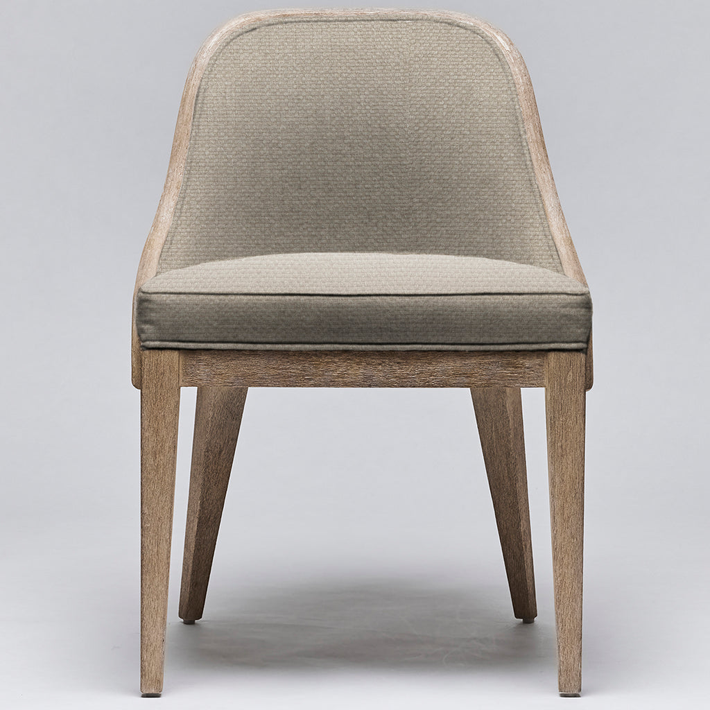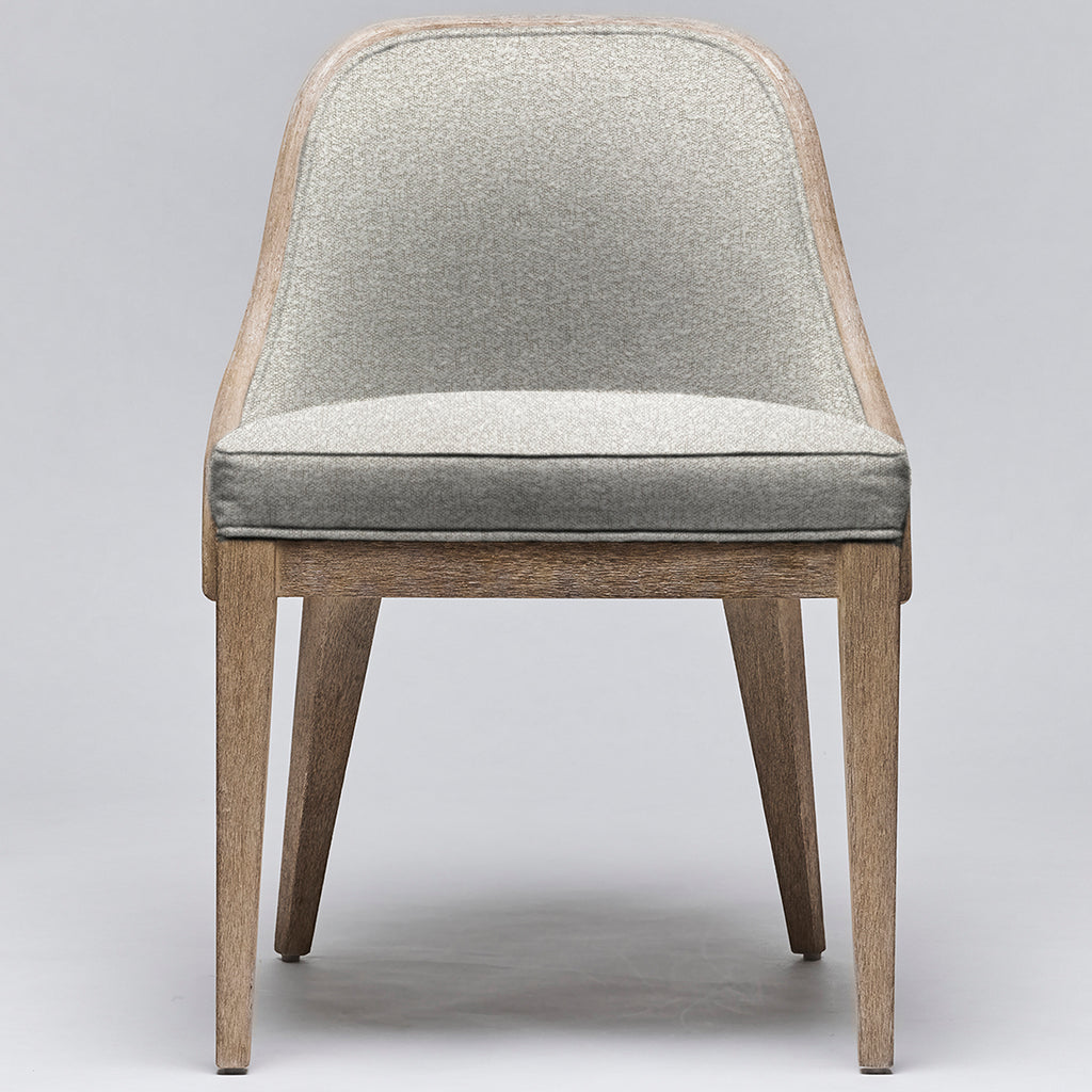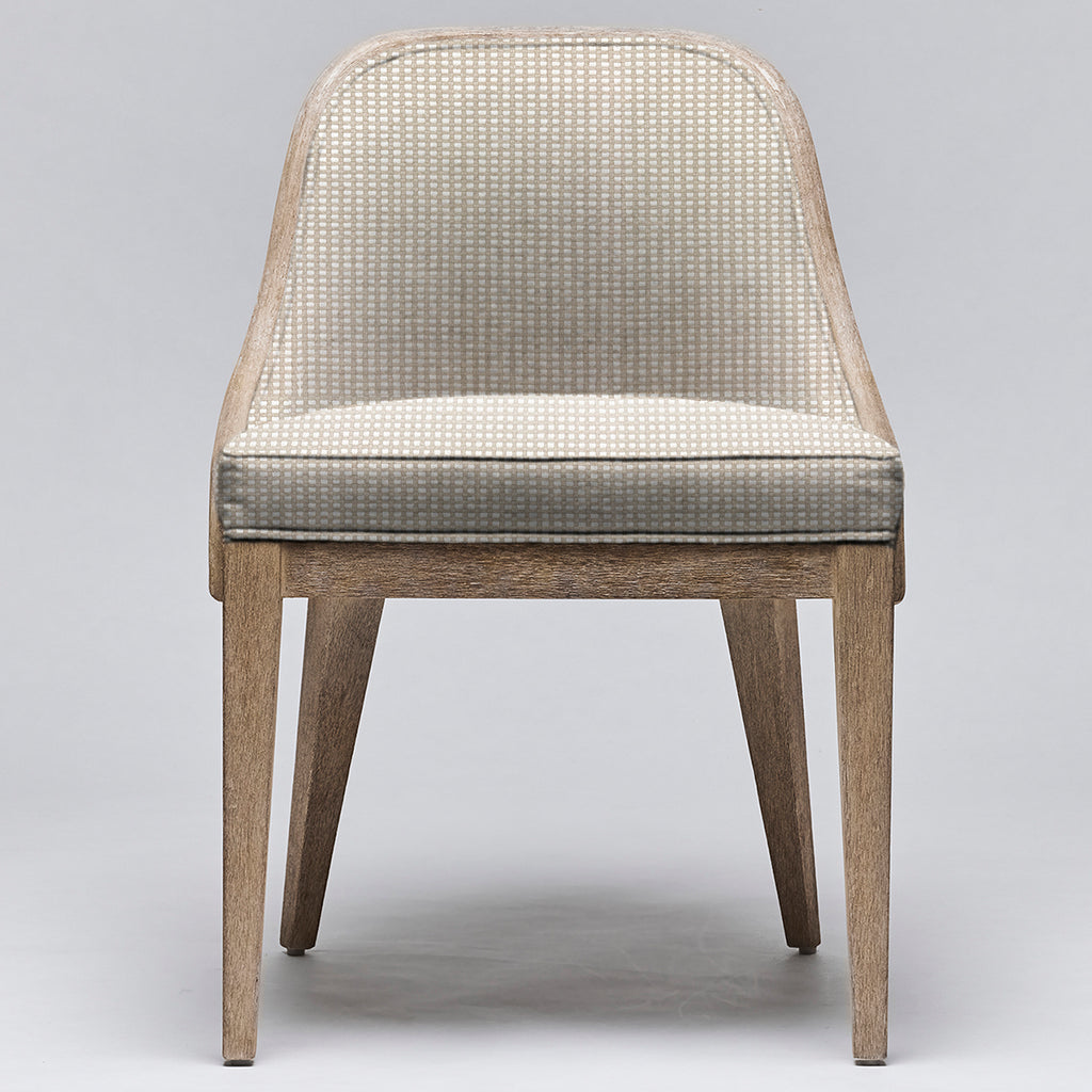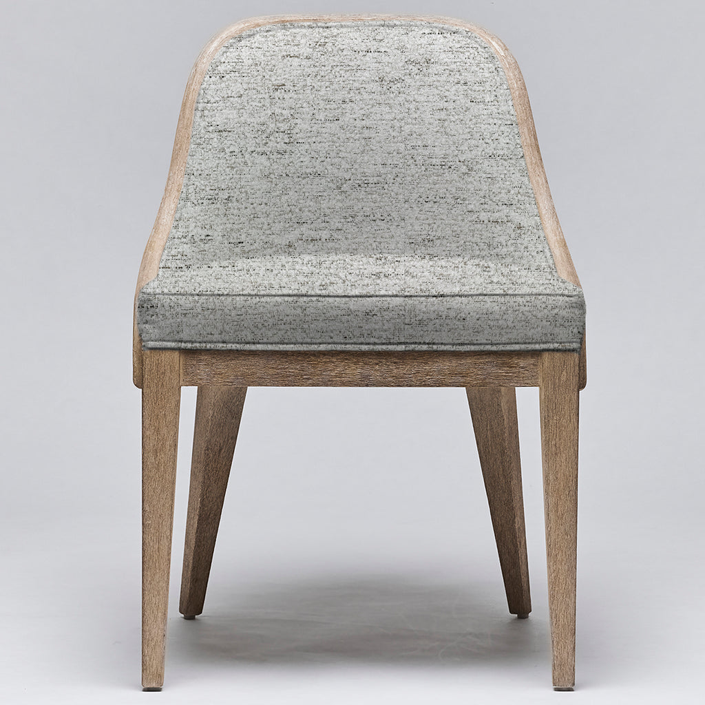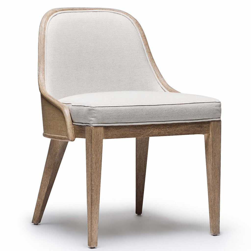 Bringing natural flair to an elegant seating option, the Siesta Dining Chair features raffia cane surrounding a grey ceruse mahogany frame.