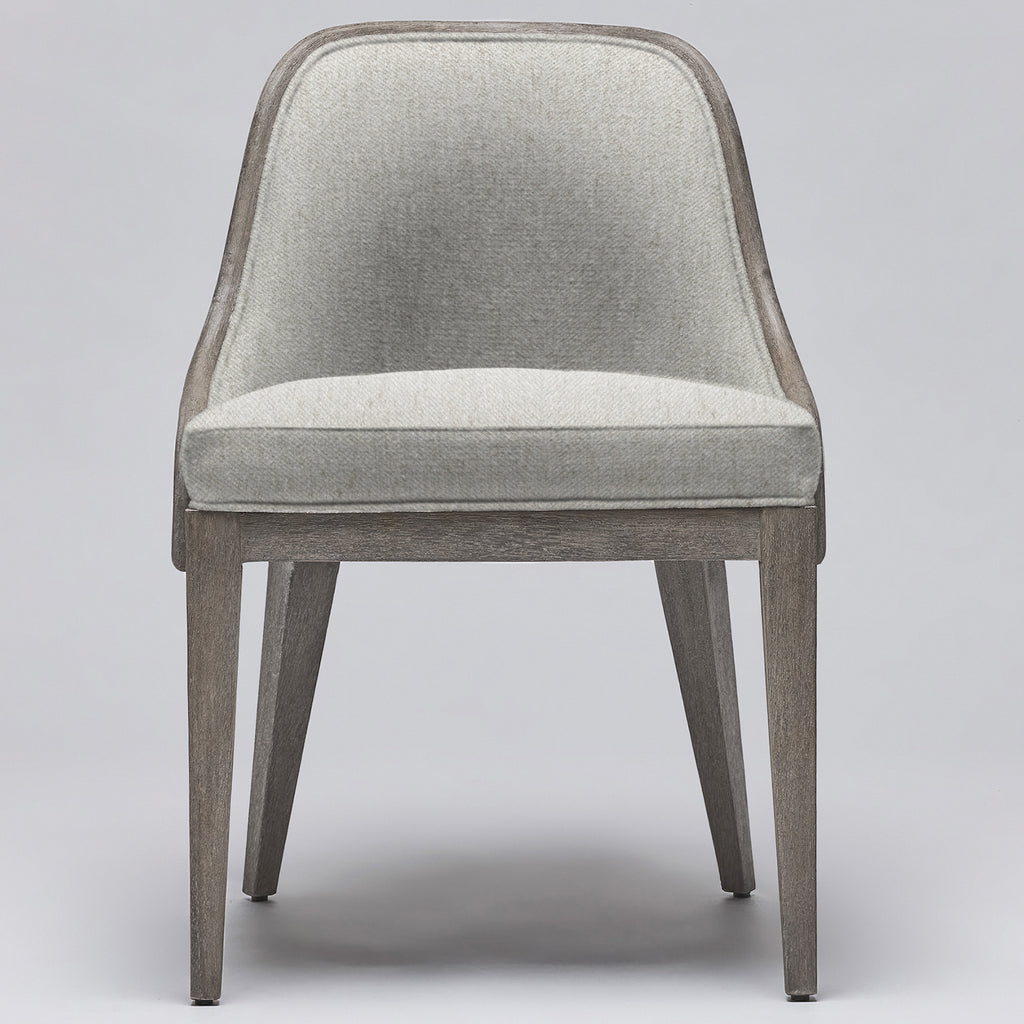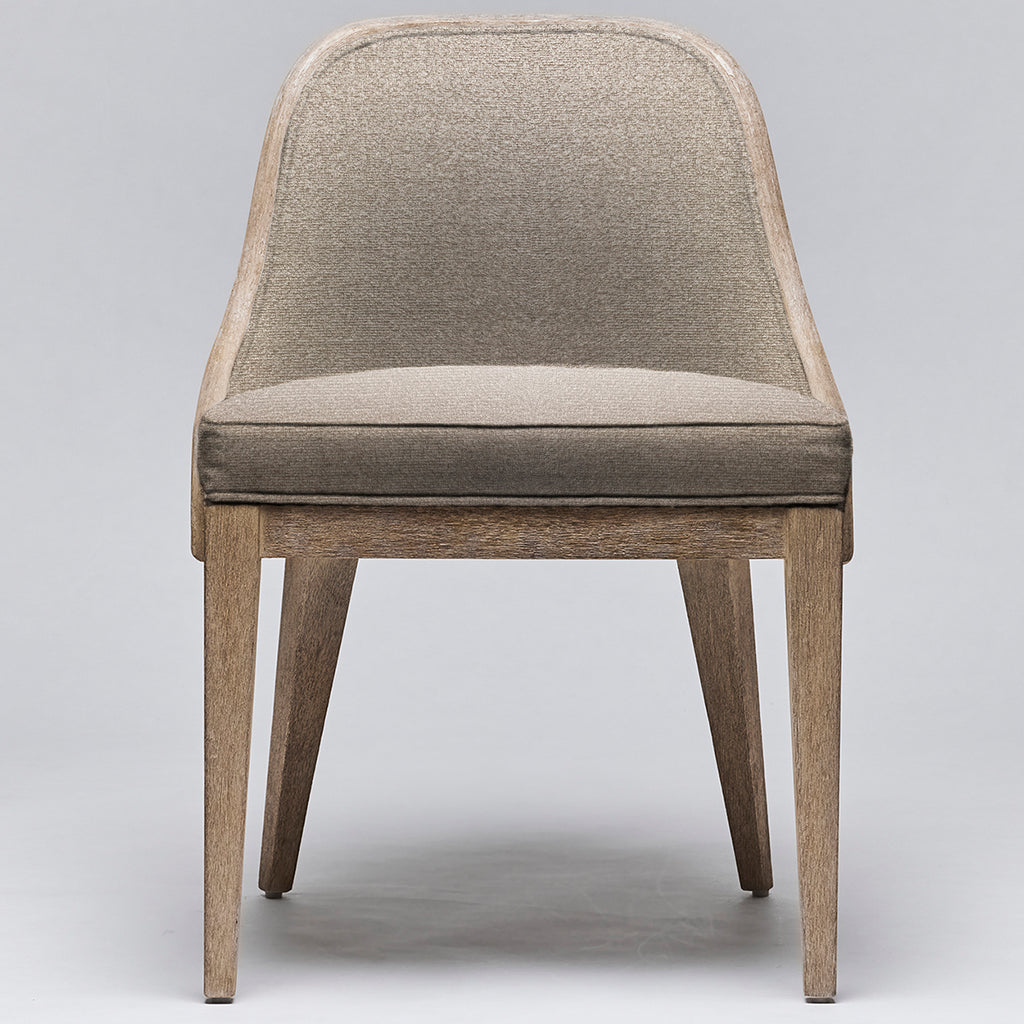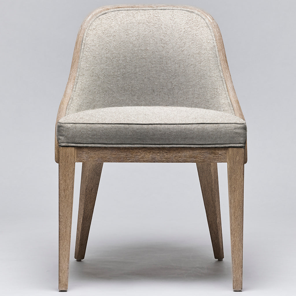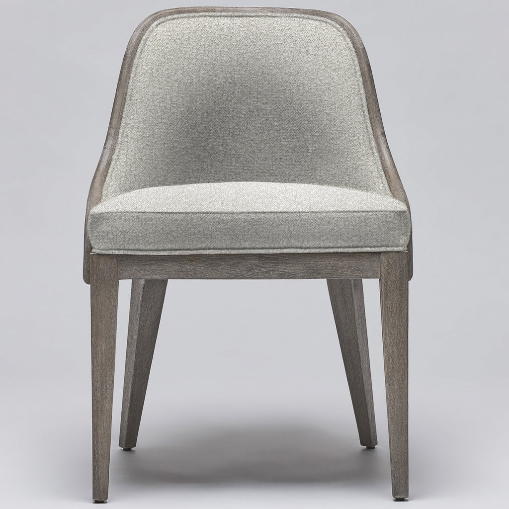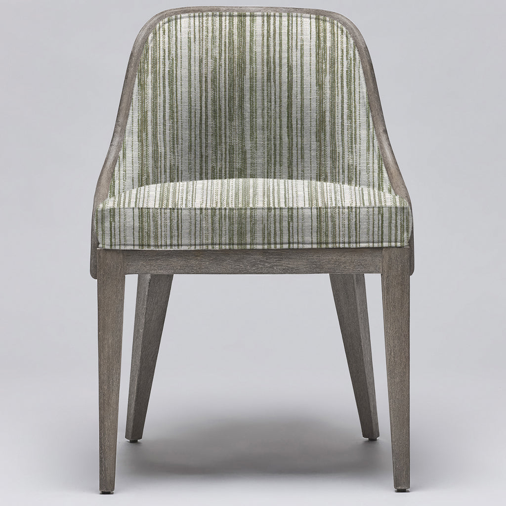 Bringing natural flair to an elegant seating option, the Siesta Dining Chair features raffia cane surrounding a grey ceruse mahogany frame.