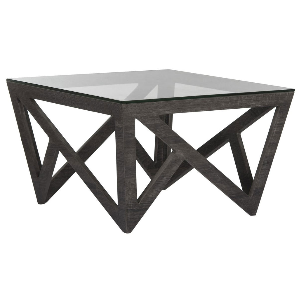 This bold coffee table was inspired by the highly collectable art design furnishings of a famous contemporary painter. Its warm, dark grey finish perfectly frames its sleek glass top, bringing a sophisticated sculptural style to any modern interior.