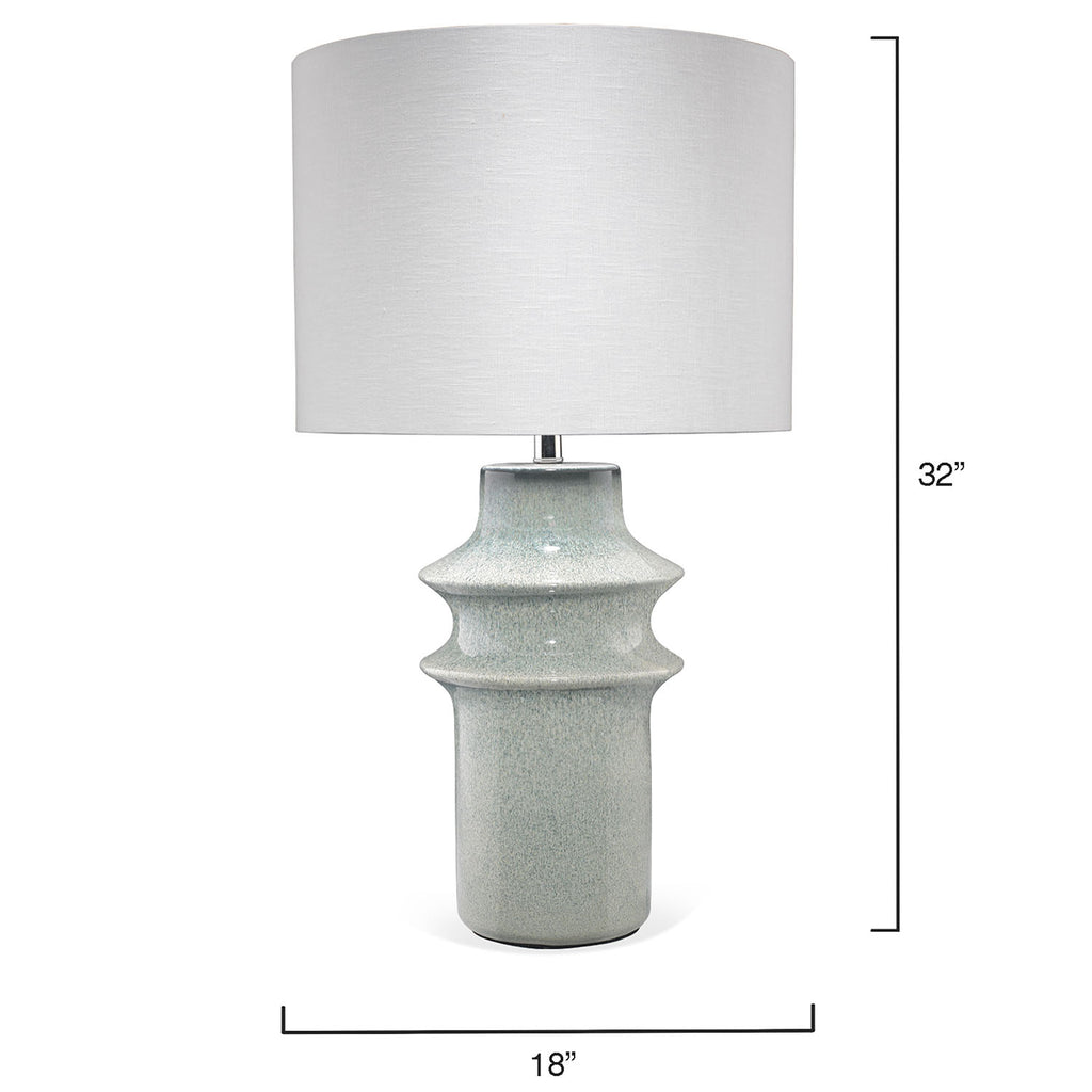 The Jamie Young Cymbals table lamp is hand painted with a reactive glaze that leaves a high gloss finish with a variegated ombre effect. The changes in tone and contrast between light and dark give this base subtle interest and give it a pop of pastel color.
