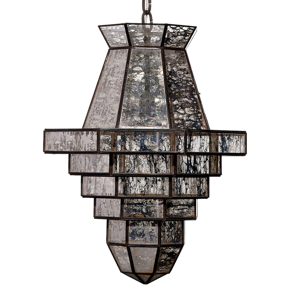 In designing this contemporary adaptation of a classic, Jamie uses a warm neutral palette perfect for modern interiors. Each pendant is expertly handcrafted of antiqued glass that creates a soft glow when lit. The adjustable chain and the metal trim are steel and iron.