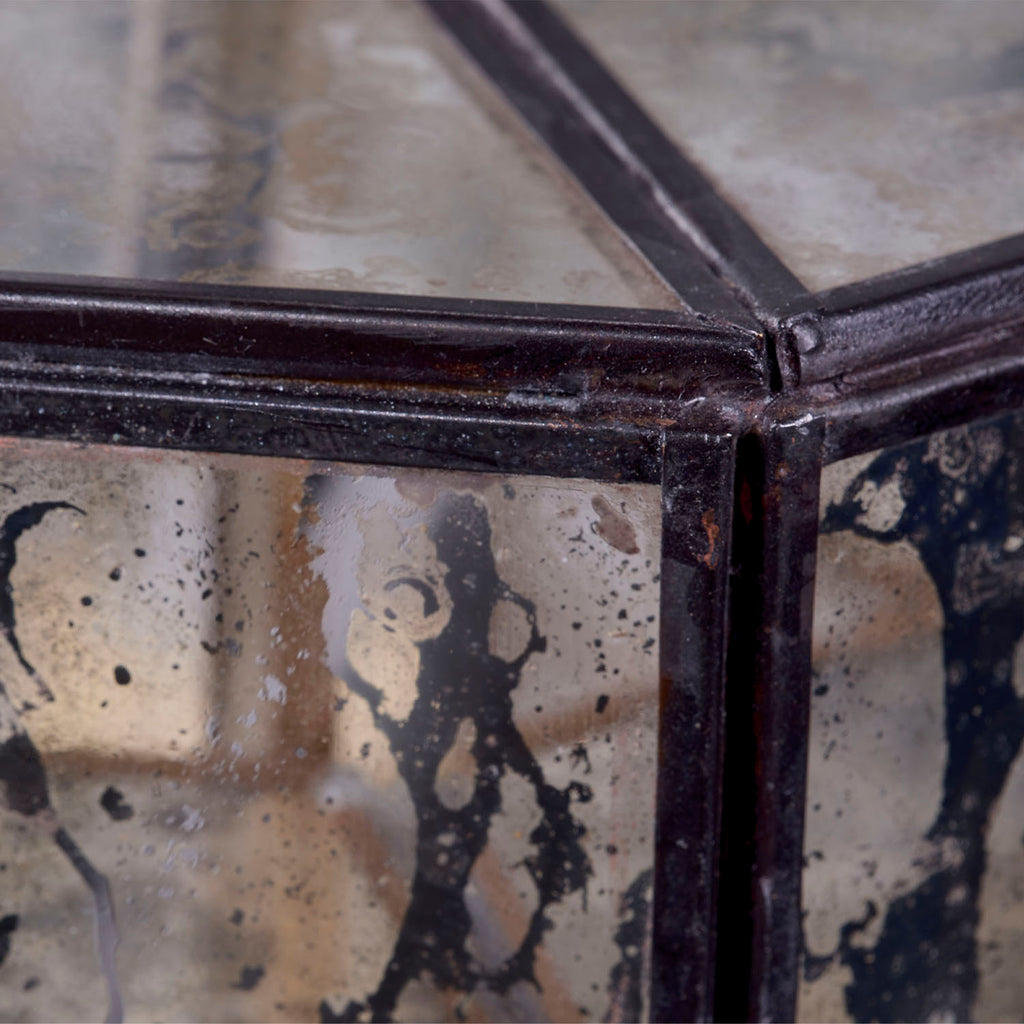• Color: Black Antiqued Glass with Bronze