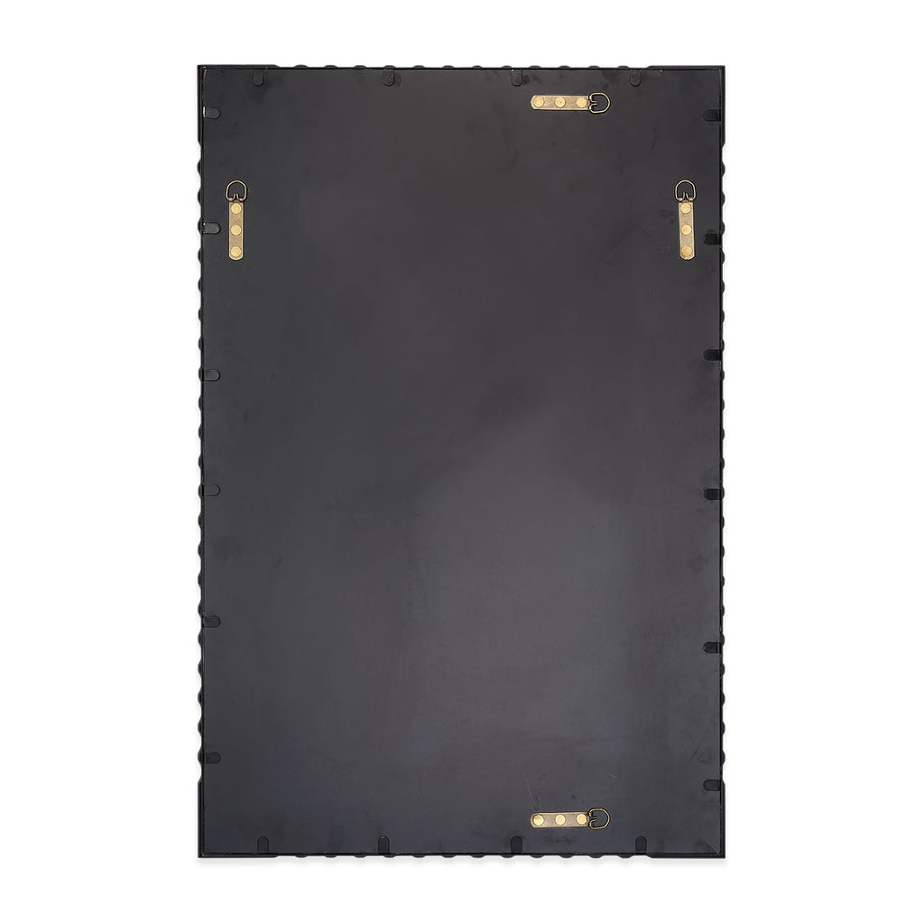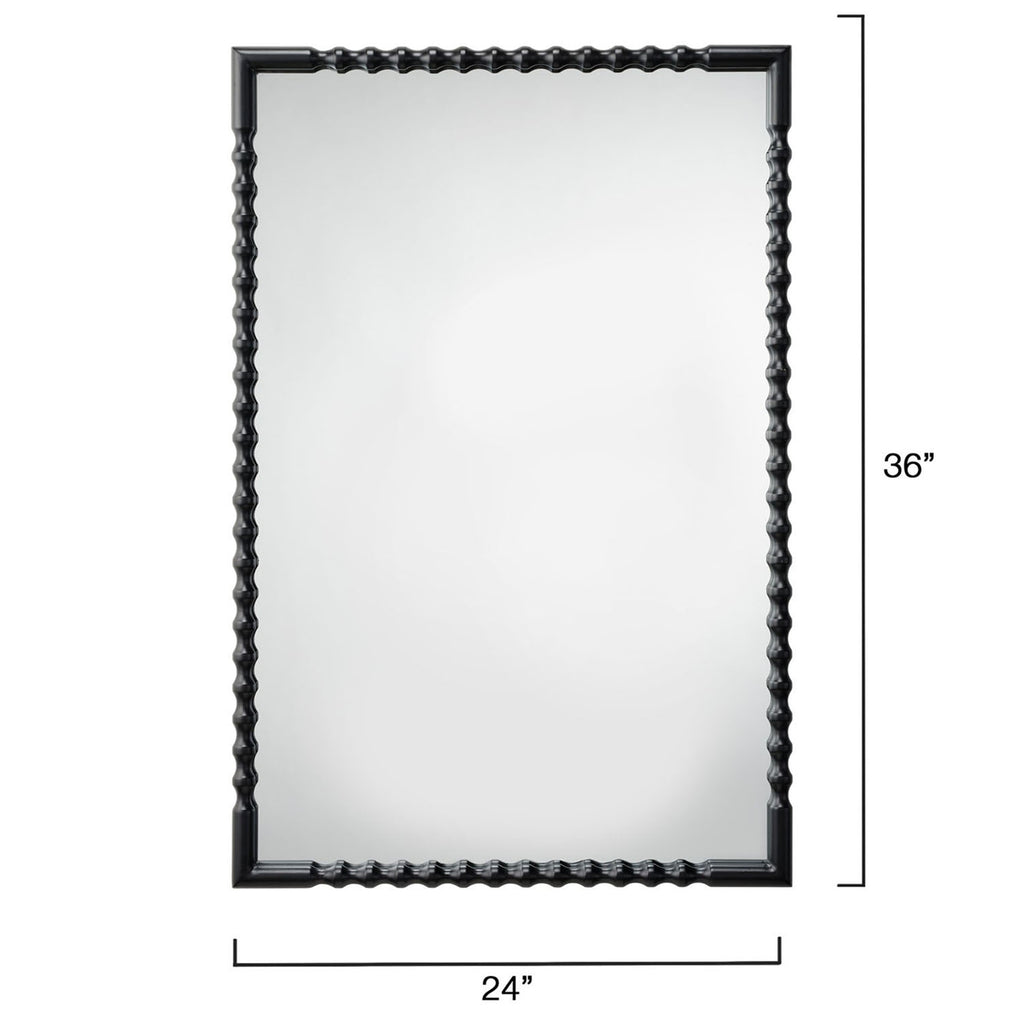 This striking yet understated wall mirror features a handwrought metal frame in a sleek black satin finish. Hang it horizontally above a sofa or powder room vanity, or vertically to illuminate an entryway. Its elegant, simple lines beautifully enhance your décor without overpowering it.